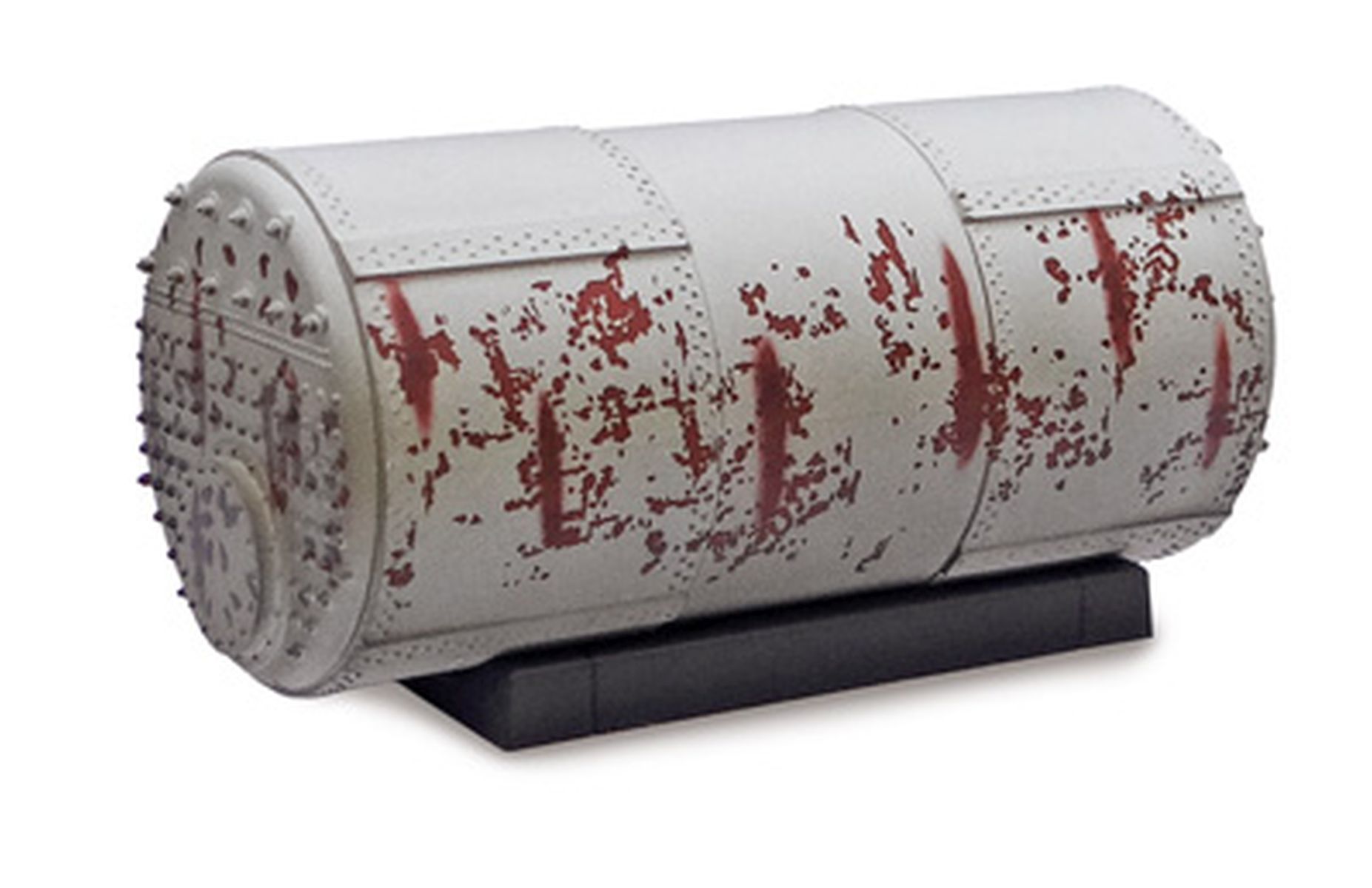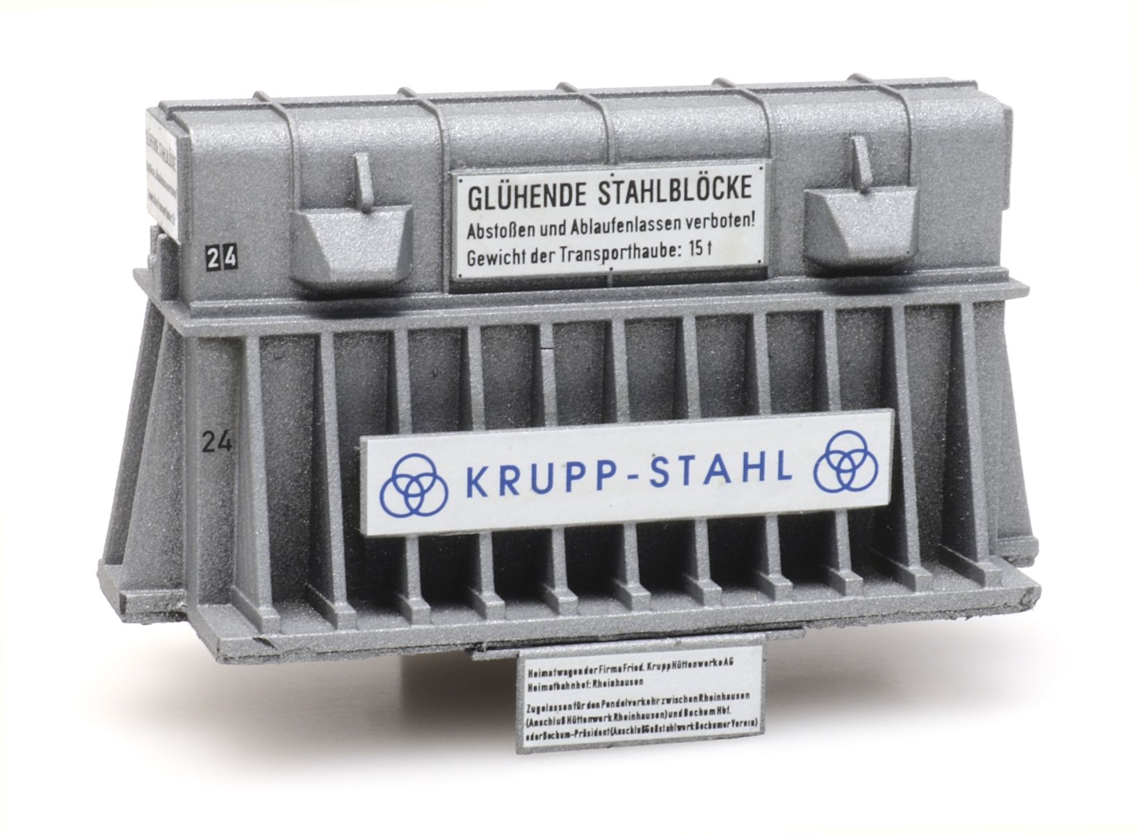 Ladegut alter Kessel „M I N O L“ auf einem Transportgestell gelagert und mit Spannbändern gesichert, passend für alle gängigen 2-achsigen Flach,- Niederbord- und Rungenwagen, Länge: ca. 75 mm