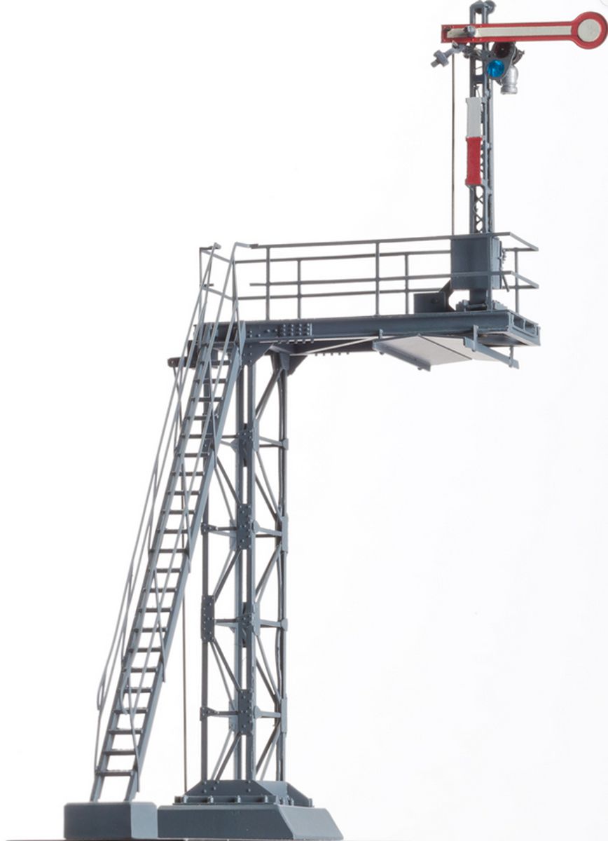Komplettbausatz! Signalbrücke nach Vorbild im Bahnhof Wiesenburg (Sachsen) – nun mit neuem Signalantrieb mit Servomotor. Der Antrieb wird in die Anlagenplatte senkrecht unterhalb des Stelldrahtes der Signalbrücke eingelassen.