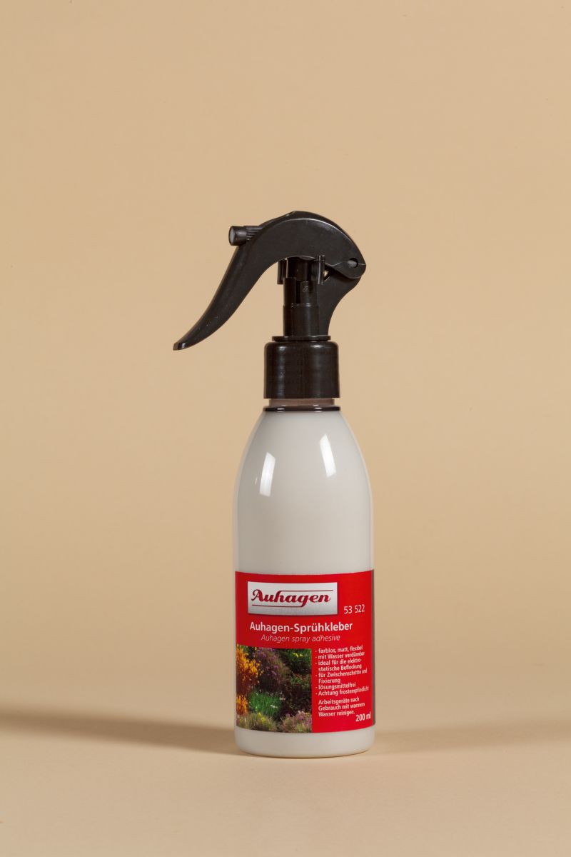 Unser matt austrocknender Auhagen-Spr eignet sich besonders f die Zwischenschritte bei der Beflockung von Str und langen Fasern oder auch als Fixierung.