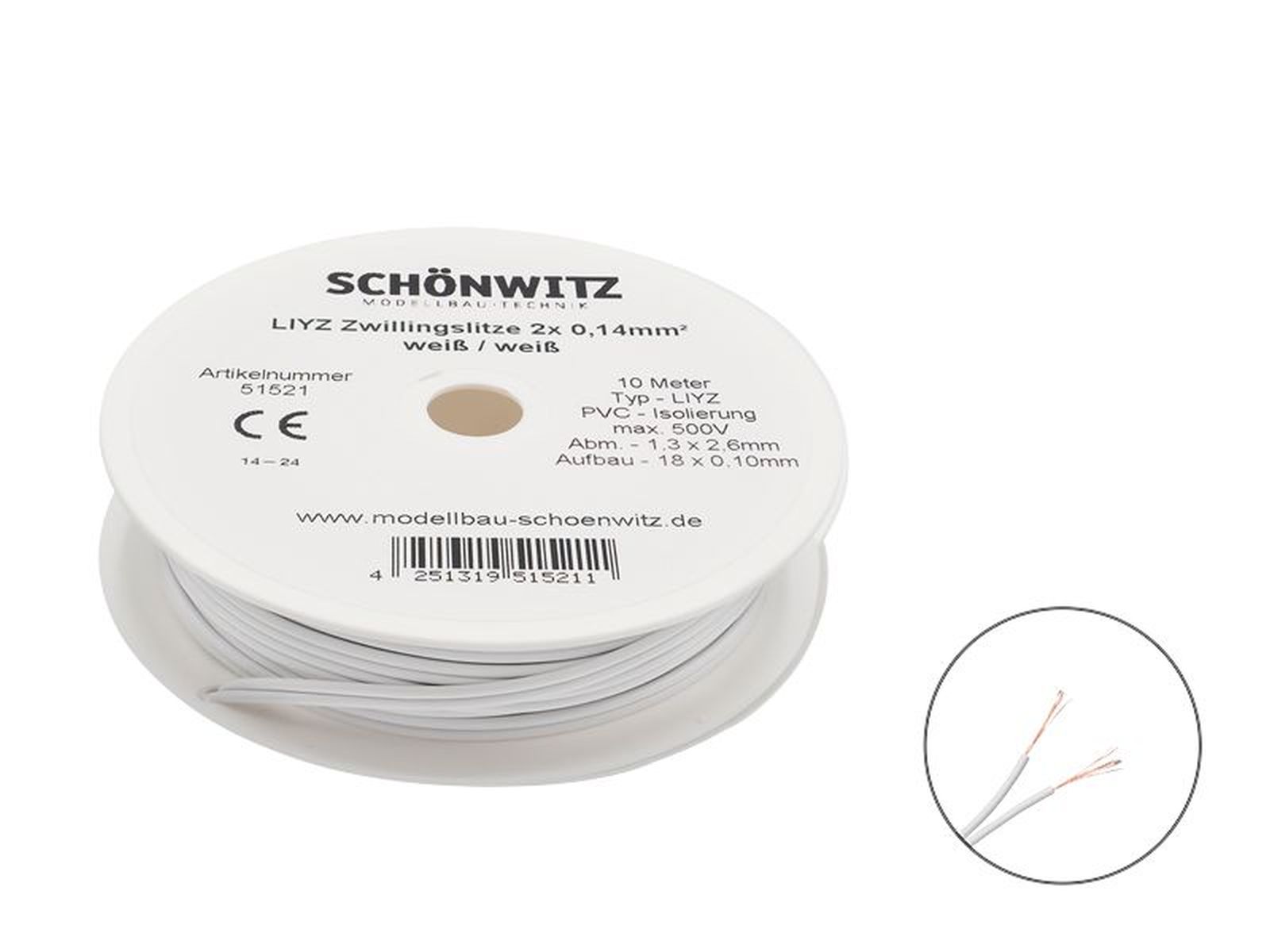 Schönwitz 51521 - 10m LIYZ Doppellitze Zwillingslitze 2x 0,14mm² weiß