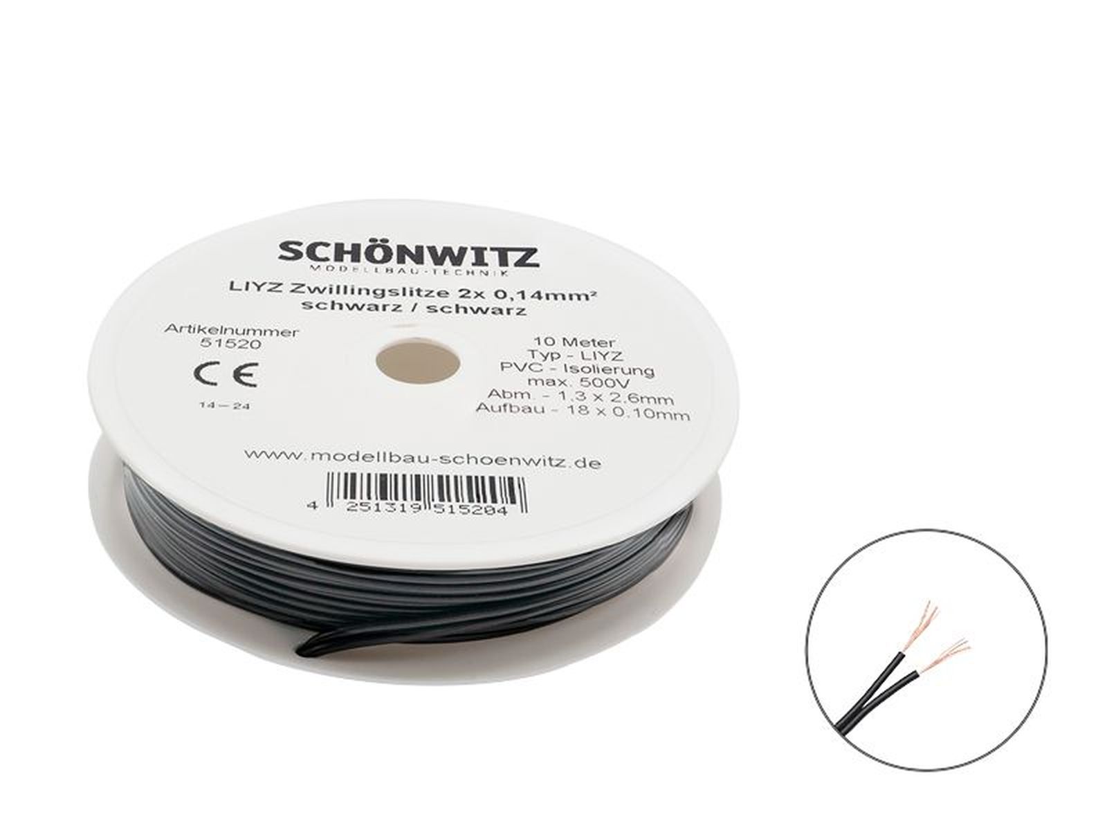 Schönwitz 51520 - 10m LIYZ Doppellitze Zwillingslitze 2x 0,14mm² schwarz