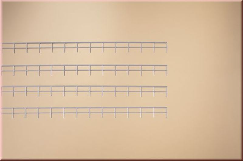 Je 16 Elemente pro Zaunart ergeben eine Gesamtlänge von ca. 400 mm einschließlich Säulen und Toren.