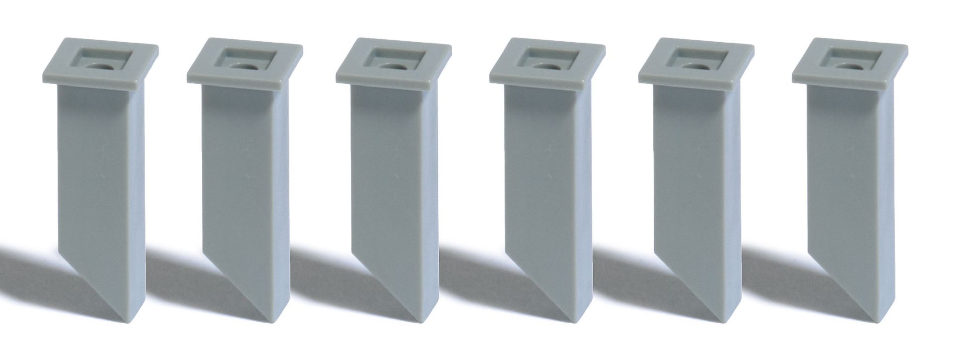 6 Schornsteine mit schrägem Sockel (45o) zur Befestigung auf Giebeldächern. Höhe: 13/17 mm.