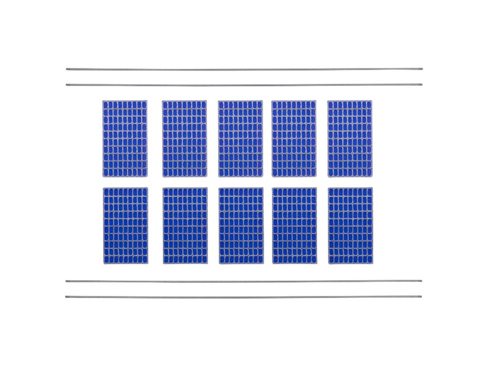 Energiewende für Ihre Spur H0 Landschaft? Aus dem Landschaftsbild sind Solaranlagen nicht mehr wegzudenken, statten auch Sie ihre Modellhäuser mit Photovoltaikmodulen aus. Dieses Set enthält 10 detailreiche Photovoltaikmodule (Umgangssprachlich auch Solarmodule genannt) und eine passende Unterkonstruktion in Form von Montageschienen.