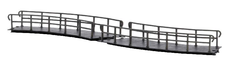 Für Bogengleise 12323. Radius 115 mm, 45°. Inhalt: 2 Stück. Ggf. zusätzlich Brückenpfeiler 12387 oder 12388 notwendig. Das Feldbahn Brückensystem Das Brückensystem passt exakt zu den Busch Feldbahngleisen und bietet unendliche Variationsmöglichkeiten für abwechslungsreichen Fahrbetrieb. Die Stahlbauweise der Brückenelemente ist im Modell hervorragend nachgestellt, die Brückengeländer sind filig…