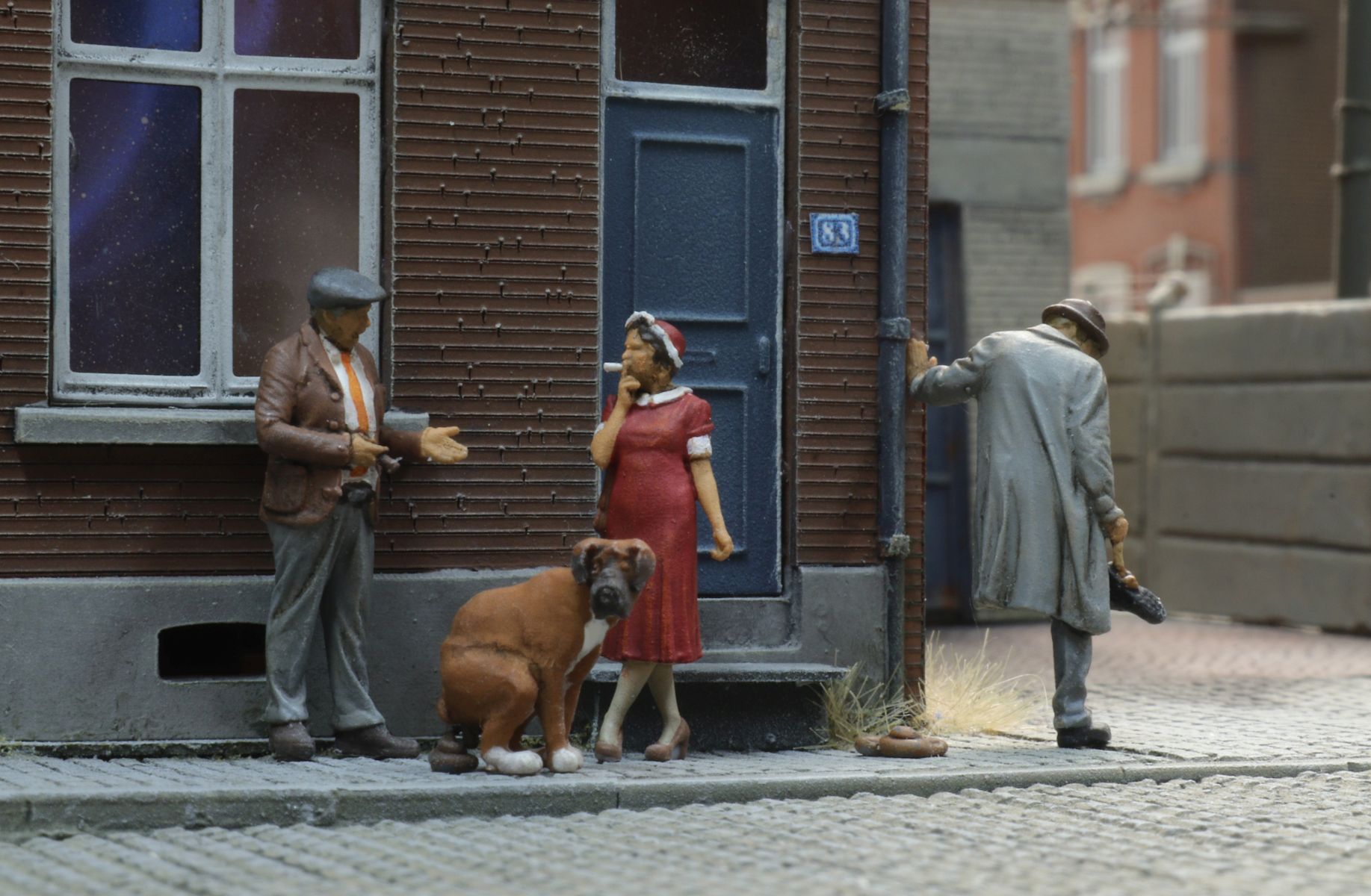 Bahnarbeiter mit Feuertonne, 2 Figuren - koloriertes Fertigmodell