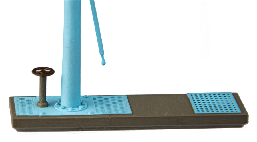 Der Arm des Wasserkrans ist beweglich. Das Set enthält eine unbemalte Eisenbahnerfigur. Passend ist der Wasserkran für die Epochen III bis VI. Das Original befindet sich am Bahnhof in Nowa Sòl.