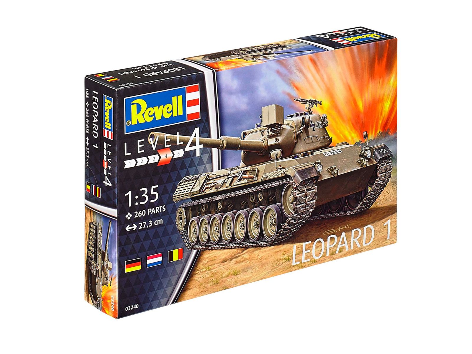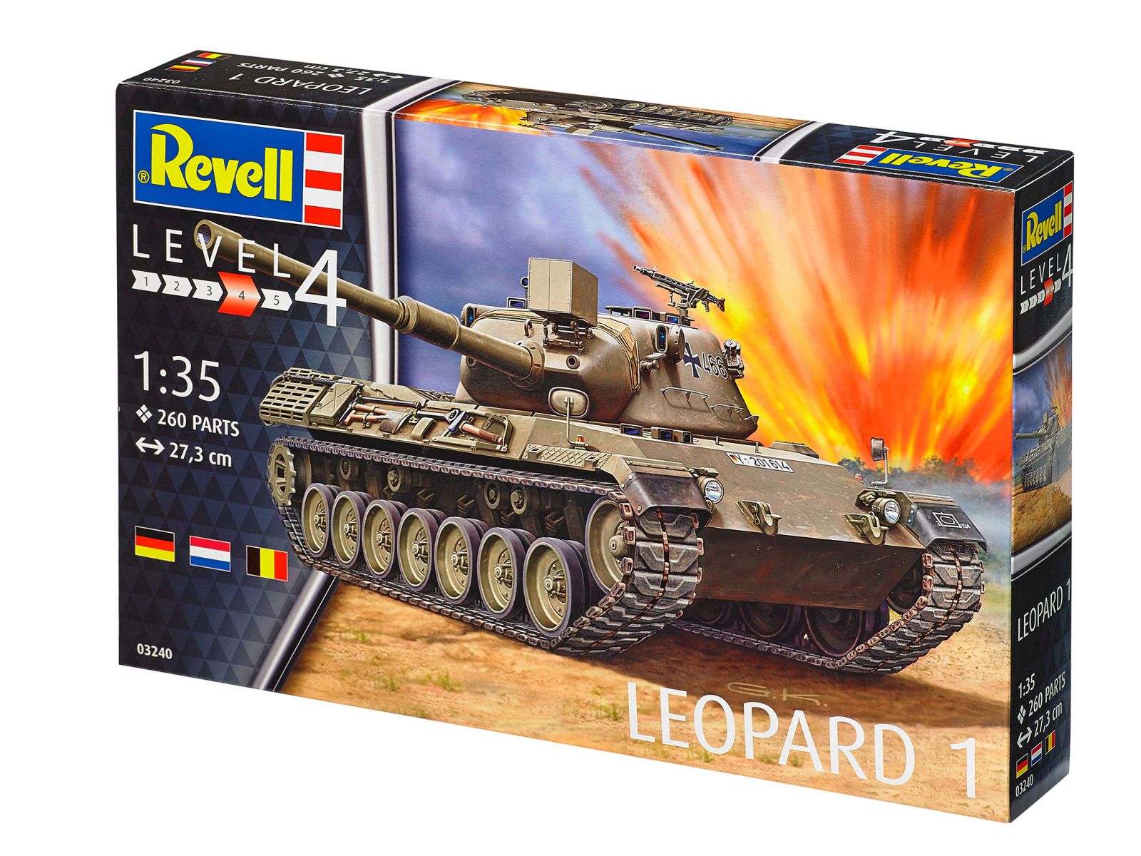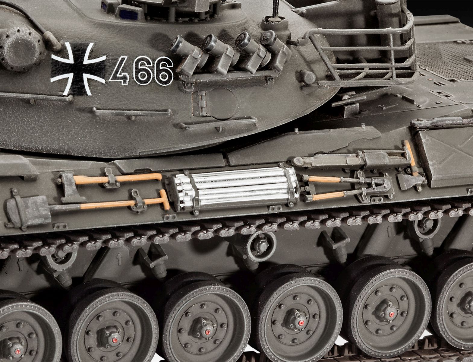 Modellbausatz des ersten nach dem zweiten Weltkrieg in Deutschland entwickelten Kampfpanzer. - Entspricht dem Baulos 2 bis 4 - Wahlteile für deutsche, belgische und niederländische Version - Montagefreundliche Vinylkette - Drehbarer Turm - Höhenrichtbare Kanone Authentische Darstellung folgender Versionen: - Leopard 1 (2. Baulos), Bundeswehr, PzBtl 194, Handorf, 1969 - Leopard 1 (4. Baulos), Bundeswehr, PzBtl 153, Koblenz, 1972 - Leopard 1, 4th Lancers Reg, 16e Pantser Div, Soest, 1969 - Leopard 1, A Eskadron / 41 Tankbataljon, Bergen-Hohne, 1977
