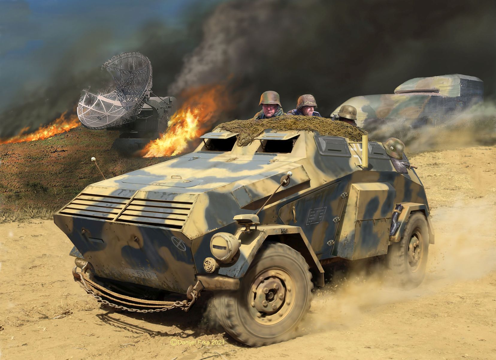 Das Sd.Kfz.247 war ein leicht gepanzertes Fahrzeug, aus dem heraus Kommandanten motorisierte Verbände geschützt führen konnten. Die Ausführung B ist die zweite Baureihe des Fahrzeugs, die Platz für bis zu sechs Mann bot. • Sehr detaillierter Bausatz • Authentisches Abziehbild