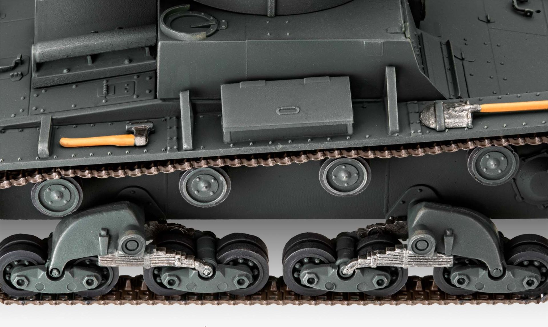 Modellbausatz des sowjetischen Panzers T-26. Das Fahrzeug sollte die Infanterie unterstützen und wurde in verschiedenen Ausführungen geliefert. Bei „World of Tanks“ ist der T-26 als leichter Panzer eingestuft. • Detaillierter Modellbaussatz • World of Tanks-Bonus • Diverse World of Tanks Abziehbilder