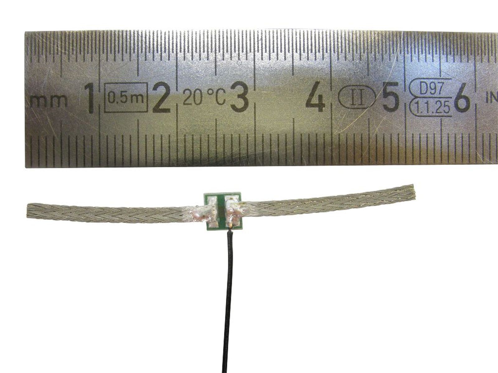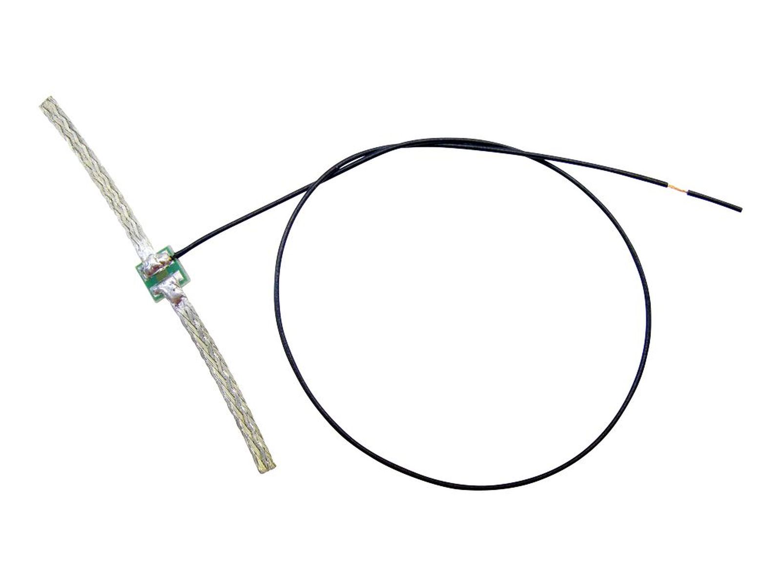 Dieser Wickelschleifer ist ausgestattet mit einem 150mm langen Anschlusskabel und zwei (!) 25mm langen und 2mm breiten Kupfergeflechten. Die ebene Basisplatine kann leicht in ein Drehgestell geklebt werden. Die Schleifer drücken durch die eigene Federwirkung auf die stromführenden Achsen oder werden um diese gewickelt.