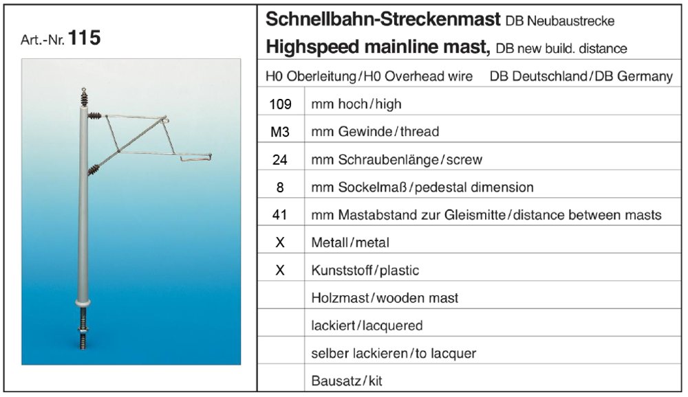Produktinformationen "Sommerfeldt 115 - Schnellbahn-Streckenmast DB-Neubaustr."