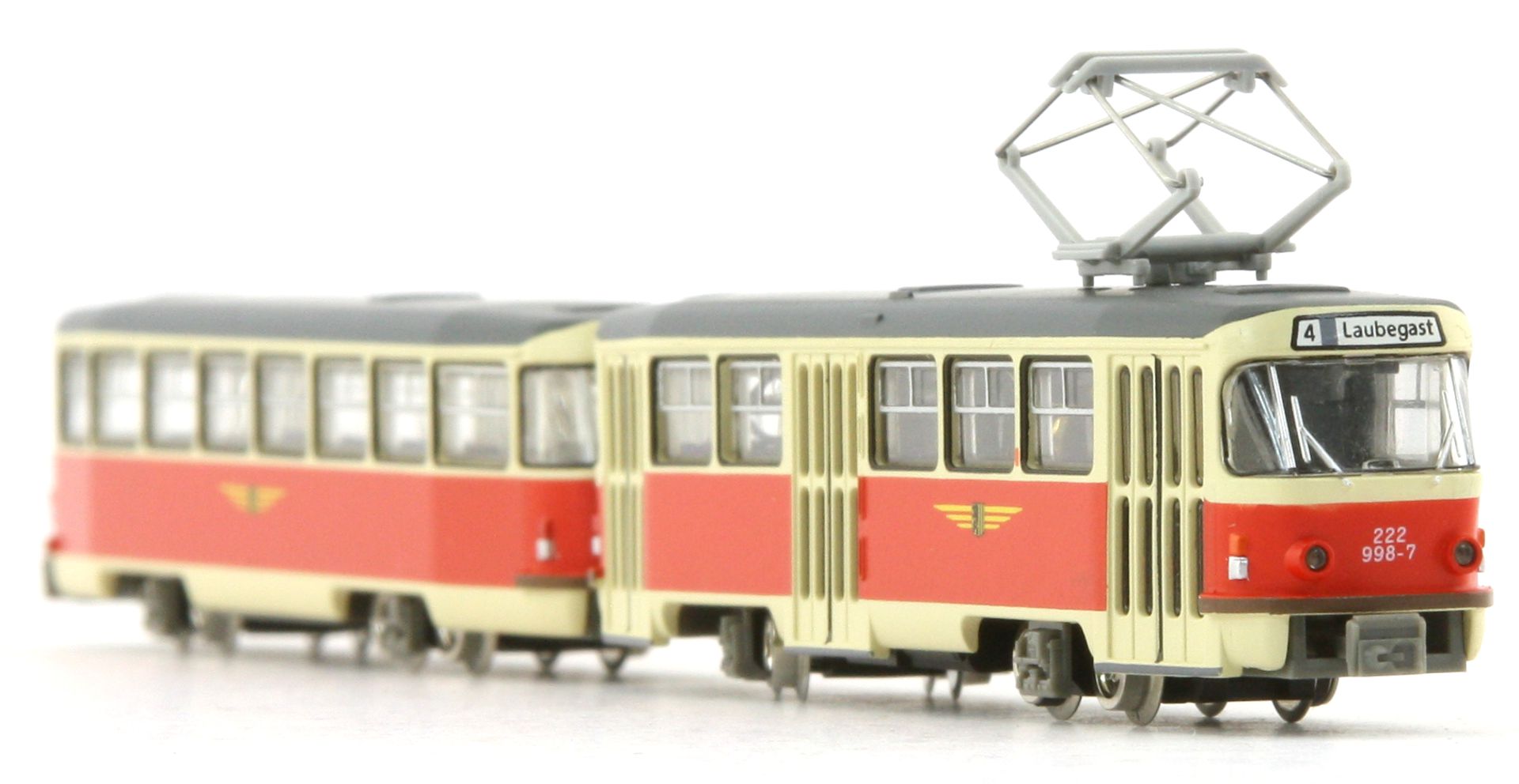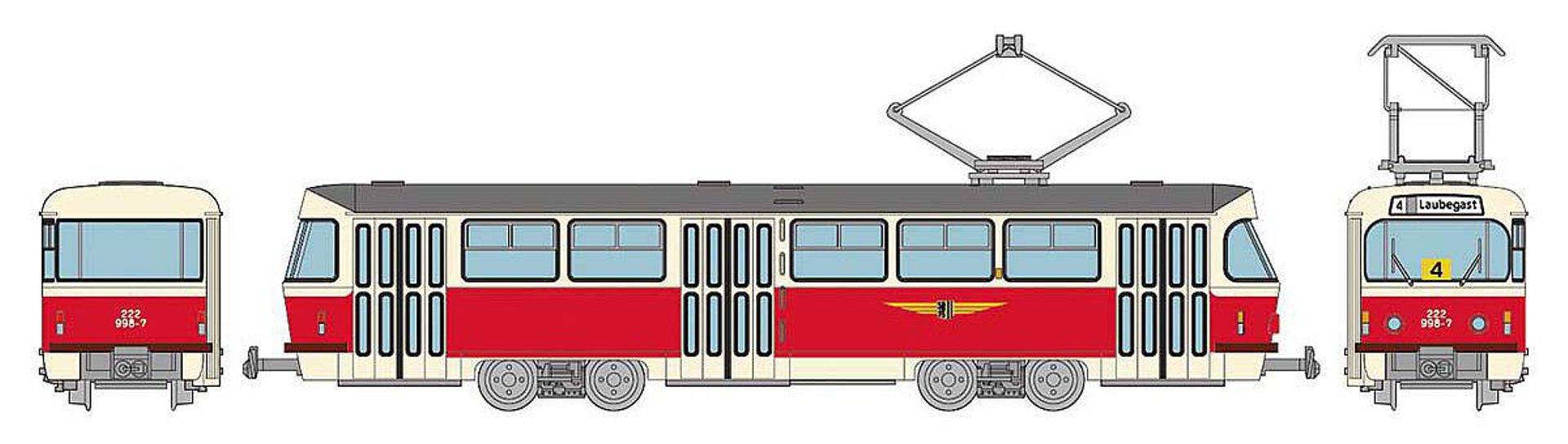 TOMYTEC 977814 - Dresdner Straßenbahn Tatra T4-B4, grau-rot-beige, Ep.IV
