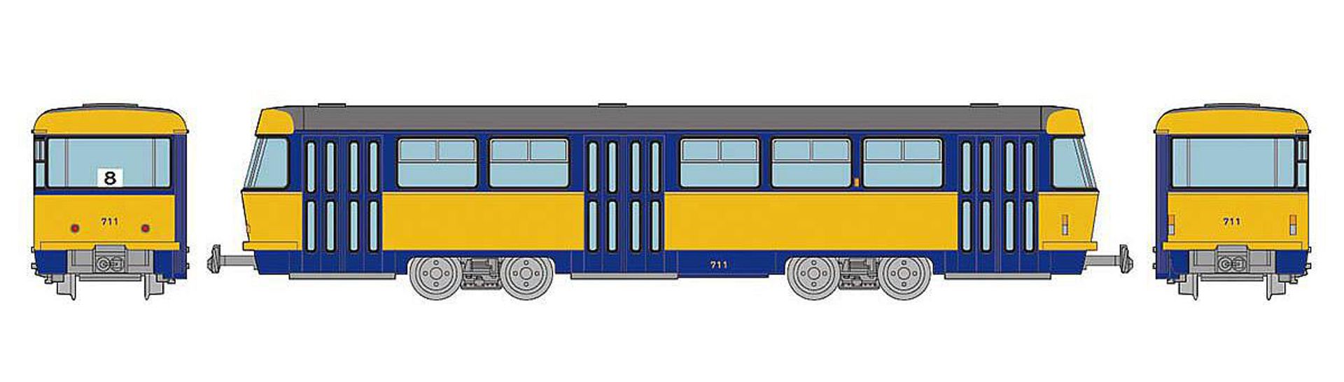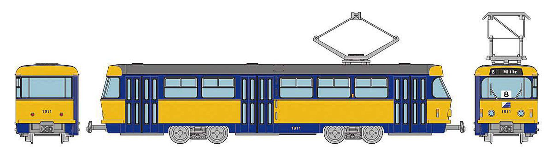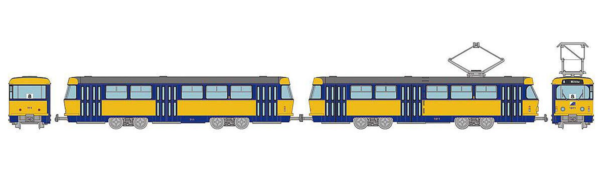 TOMYTEC 977821-AED - Leipziger Straßenbahn Tatra T4-B4, grau-blau-gelb, Ep.IV, DC-Digital