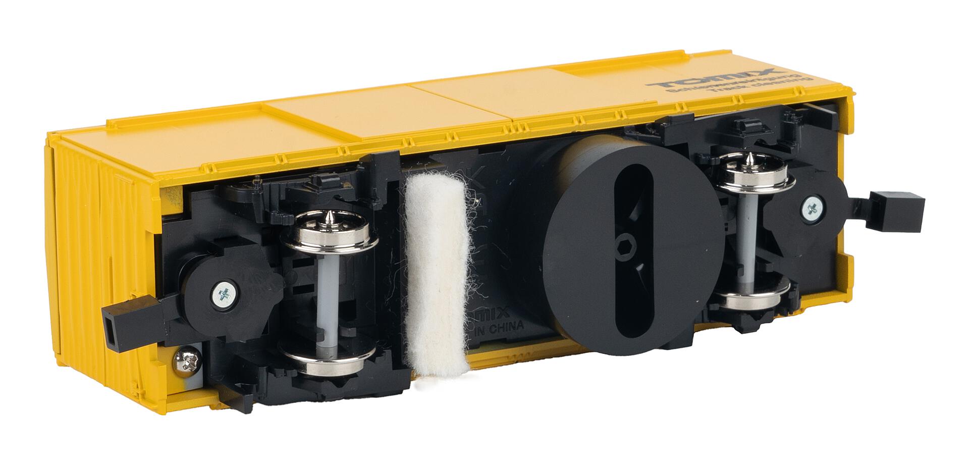 Der Schienenreinigungswagen von Tomytec zeichnet sich durch eine schlichte aber real-getreue Formgebung aus. Mit dem typischen Goldgelb, RAL 1004, folgt er der Farbgebung nicht nur der Bahndienstfahrzeuge der Deutschen Bahn sondern auch anderer europäischer Bahngesellschaften.