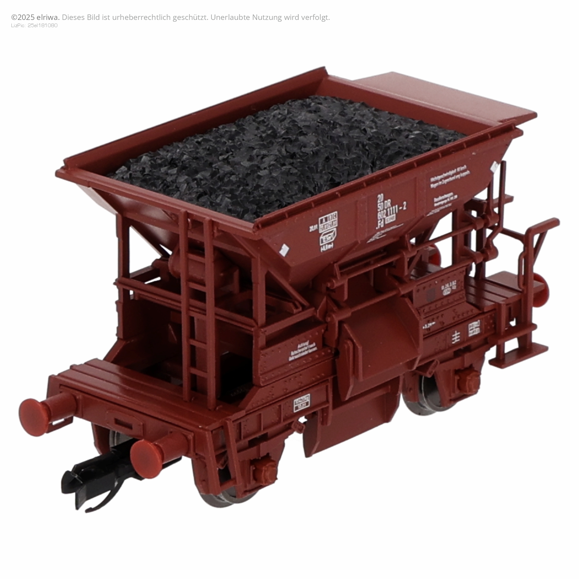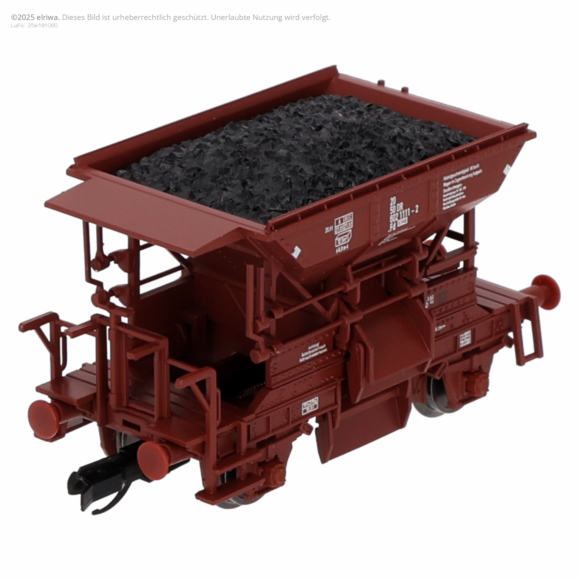 Mal etwas ganz anderes! Die kurzen Talbot-Schotterwagen hat Tillig in den letzten Jahren bereits in großen Mengen vermarktet. Eine ausgefallene Variante zu finden, ist sehr schwierig aber nicht unmöglich! Wir sind mit diesem "Verkaufswagen" fündig geworden. Dieser Wagen stand im Zeitraum der Epoche IV im Bahnbetriebswerk Berlin-Pankow. Das Modell enthält eine schwarze Kohleladung.