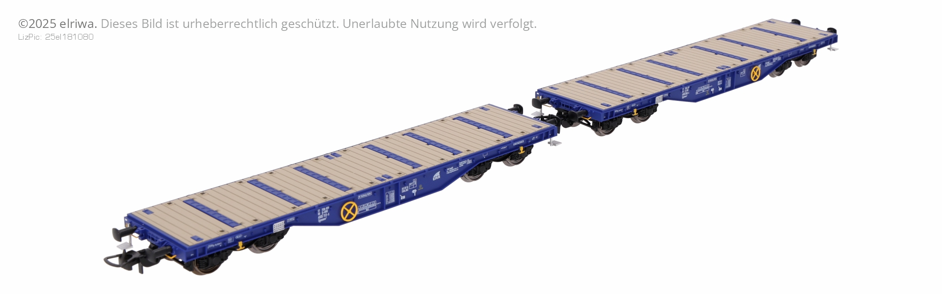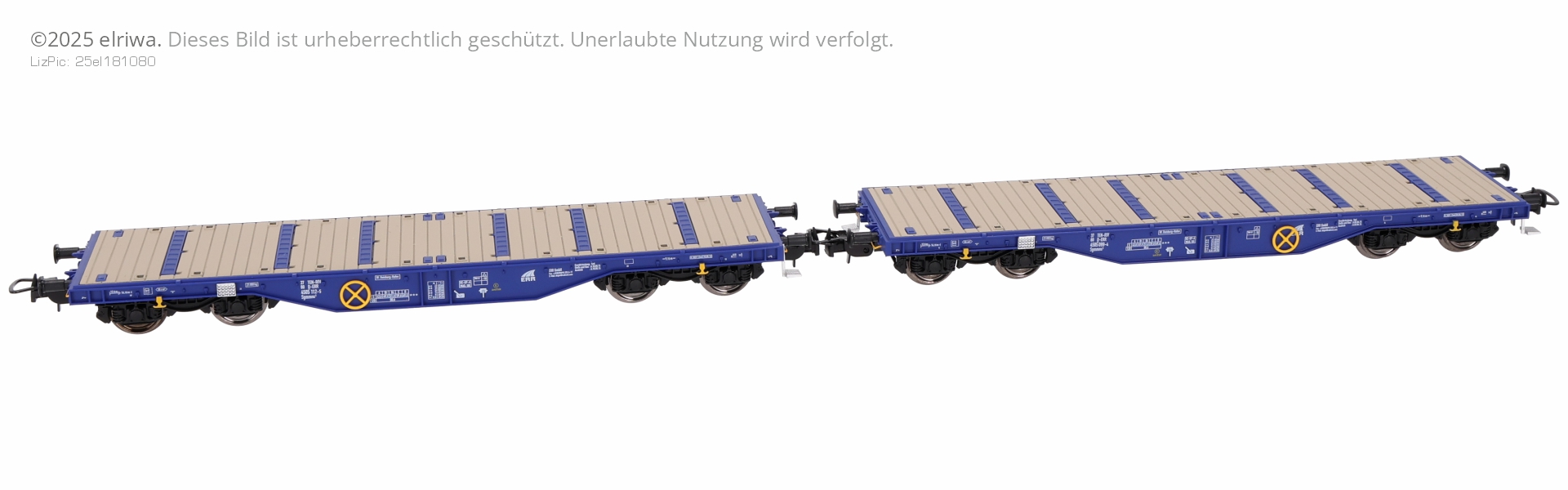 Messe-Sondermodell! Güterwagenset der ERR, bestehend aus zwei Flachwagen Sgmmns, beladen mit Satteldachträger, Ep. VI