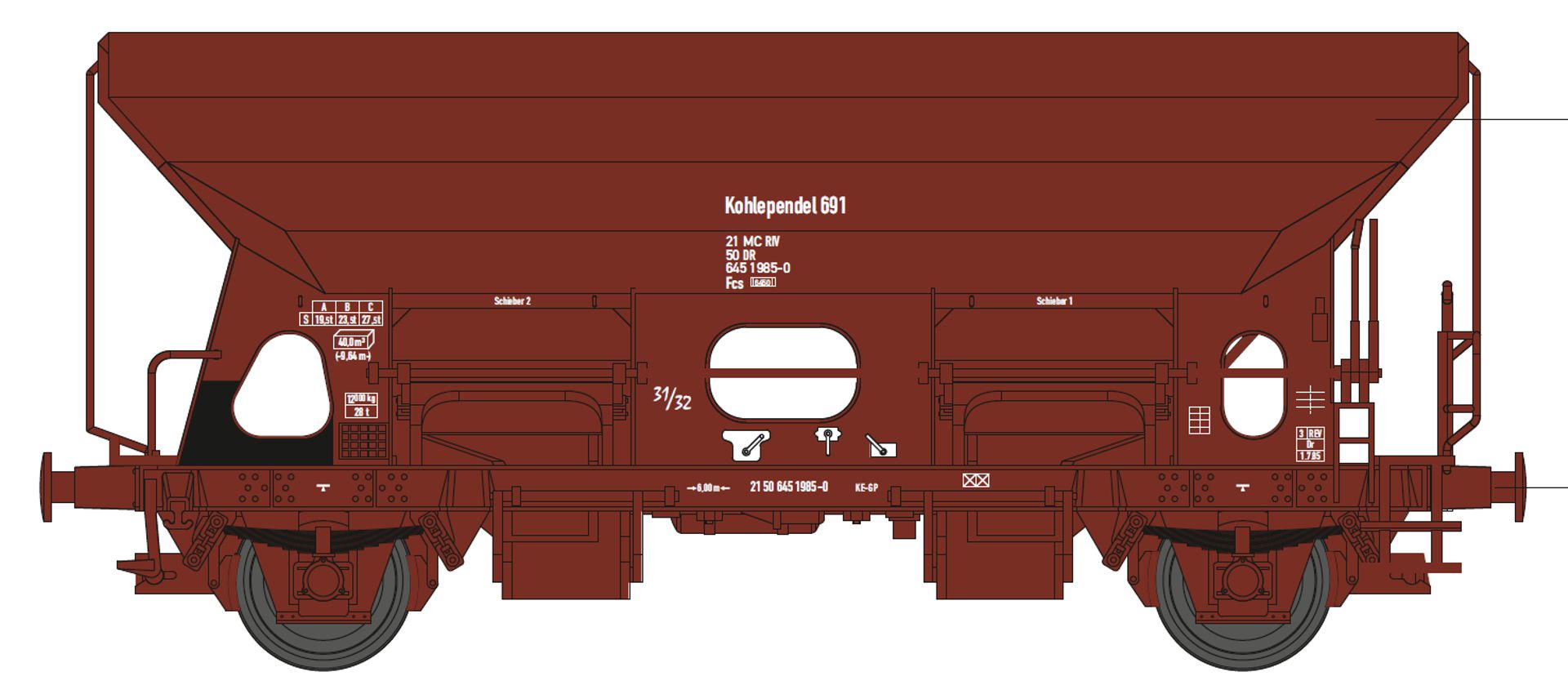 Schüttgut- bzw. Selbstentladewagen der Bauart Fcs wurden auch bei der Deutschen Reichsbahn in großen Stückzahlen eingesetzt. Besonders für die Energieversorgung der DDR-Industrie – die nahezu ausschließlich auf Kohle und Briketts basierte – spielten sie eine zentrale Rolle. Für den zuverlässigen Transport großer Mengen wurden sogenannte Block- bzw. Pendelzüge gebildet, die aus Wagen gleicher Bauart bestanden und so einen schnellen und effizienten Umschlag zwischen zwei festen Punkten ermöglichten.