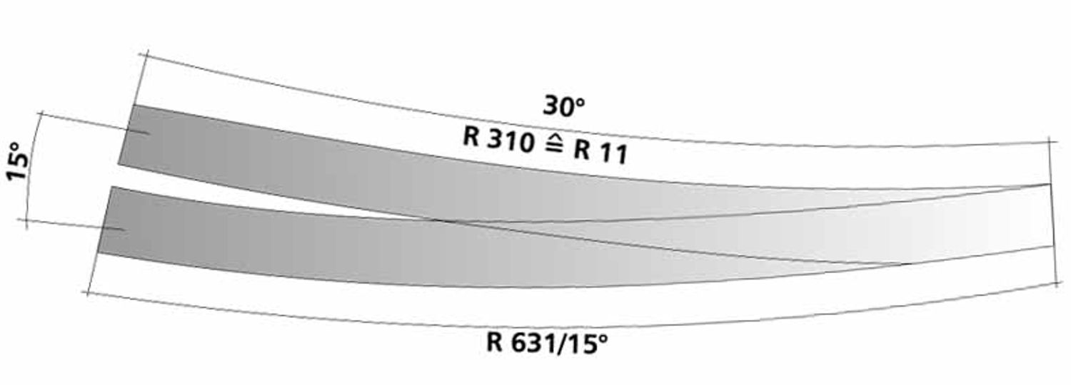 - Abzweig 15', Radius 631, Abzweig 30', Radius 310