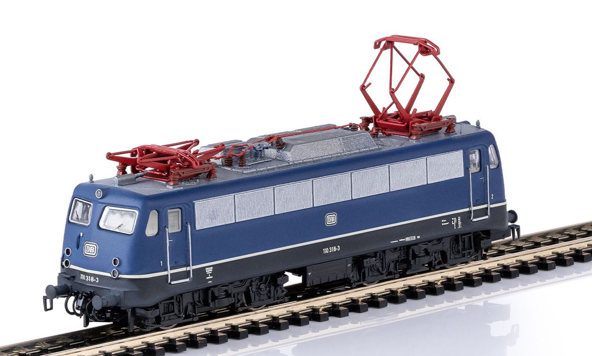 Vorbild: Einheits-Elektrolokomotive 110 318-3 der Deutschen Bundesbahn (DB). Spitzname „Bügelfalte“. Kobaltblaue Grundfarbgebung. Ausführung mit Doppellampen, Kunststoffregenrinnen über den Frontfenstern und Führerstandstüren, „durchgehendes“ Lüfterband aus 7 „Klatte-Lüftergittern lang“ und stirnseitige Handgriffe. Ohne Schürze und ohne Pufferverkleidung. Zustand um 1983. Einsatz: Güter- und Personenzüge des Nah- und Fernverkehrs.