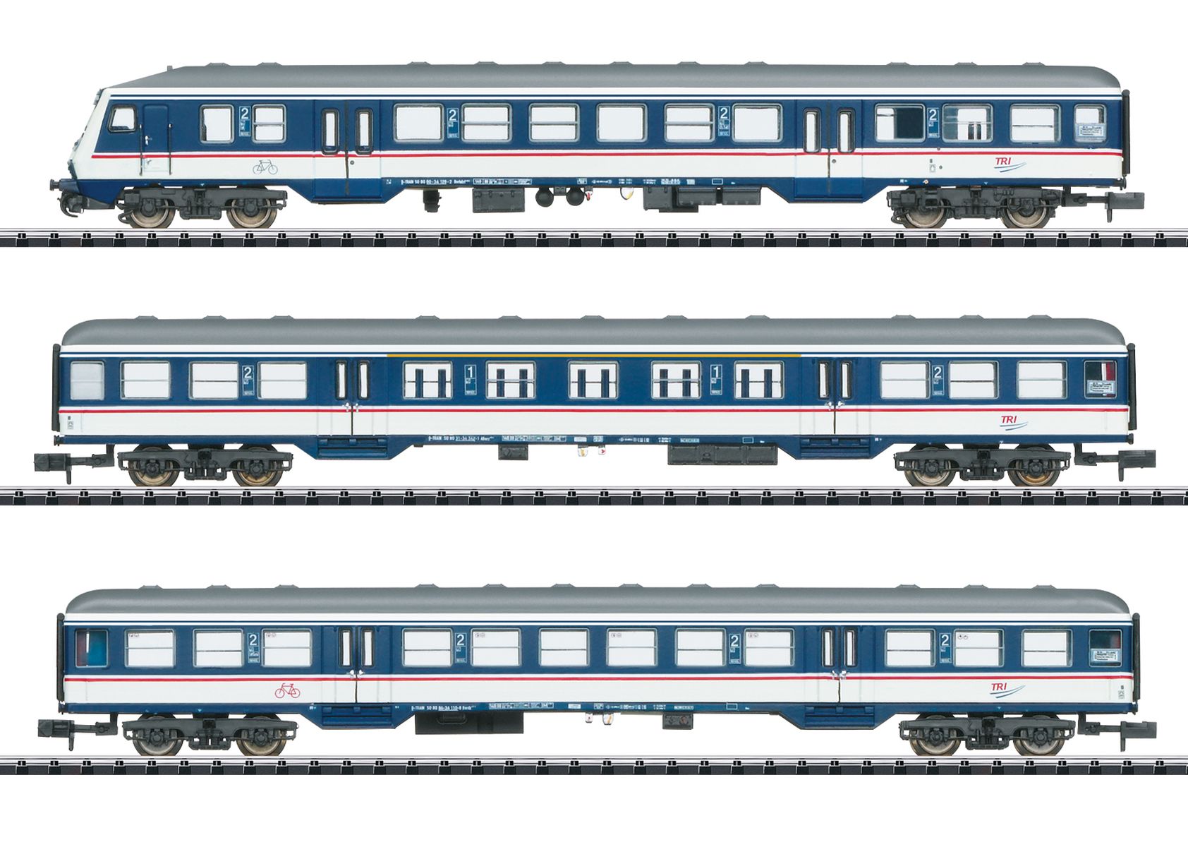 Vorbild Nahverkehrswagen 1./2. Klasse ABnrz, Nahverkehrswagen Bnrdz 451.9 und Nahverkehrssteuerwagen Bauart Bnrbdzf 480.1 (Betriebsnummer: 50 80 80-34 129-2) der Train Rental GmbH (TRI). Betriebszustand um 2021.
