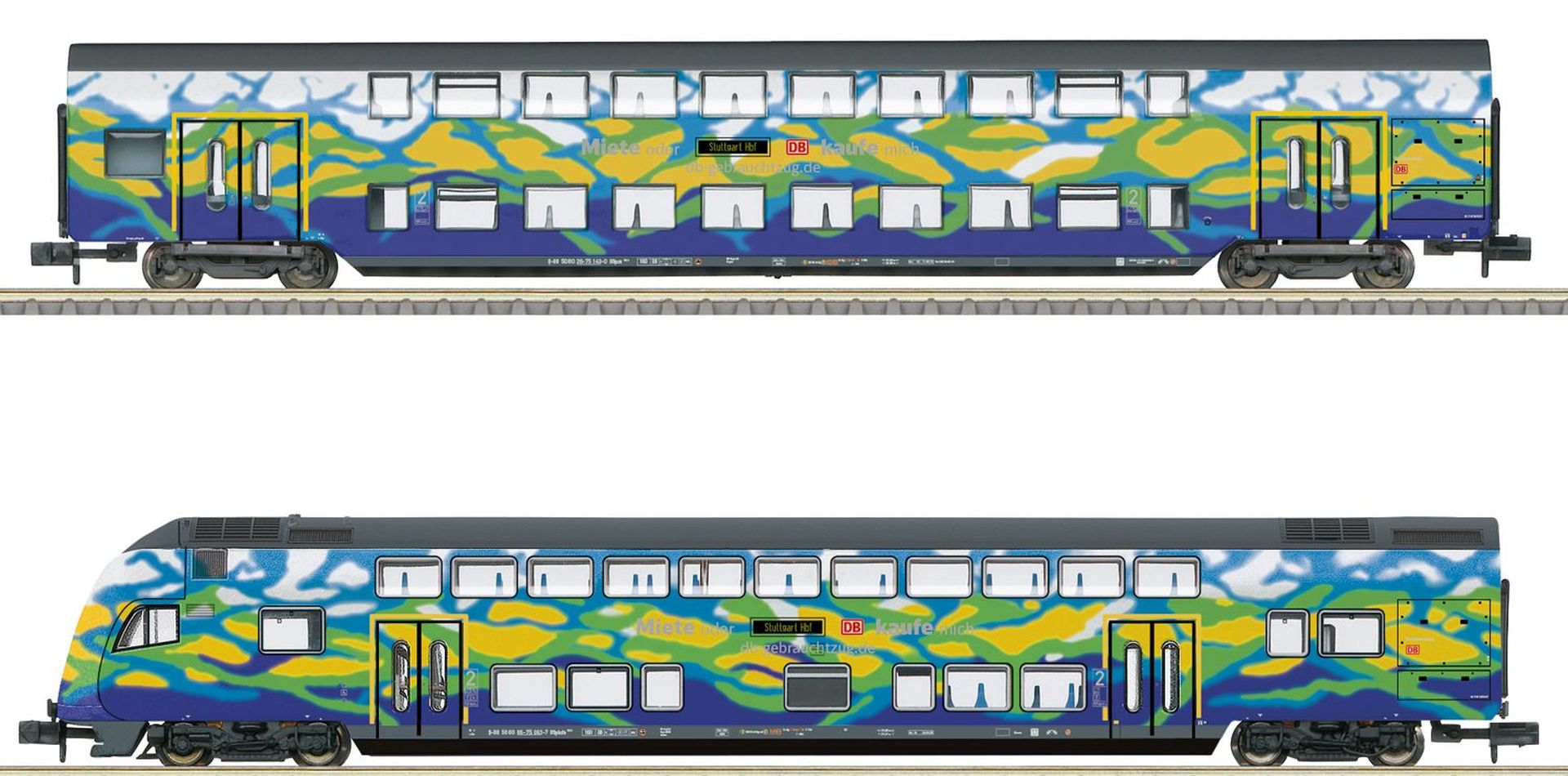 Vorbild: 1 x Doppelstock-Mittelwagen DBpza 753.5 und 1 x Doppelstock-Steuerwagen DBpbzfa 765.6 der DB AG, Geschäftsbereich DB-Gebrauchtzug. Aktueller Zustand der Epoche VI.