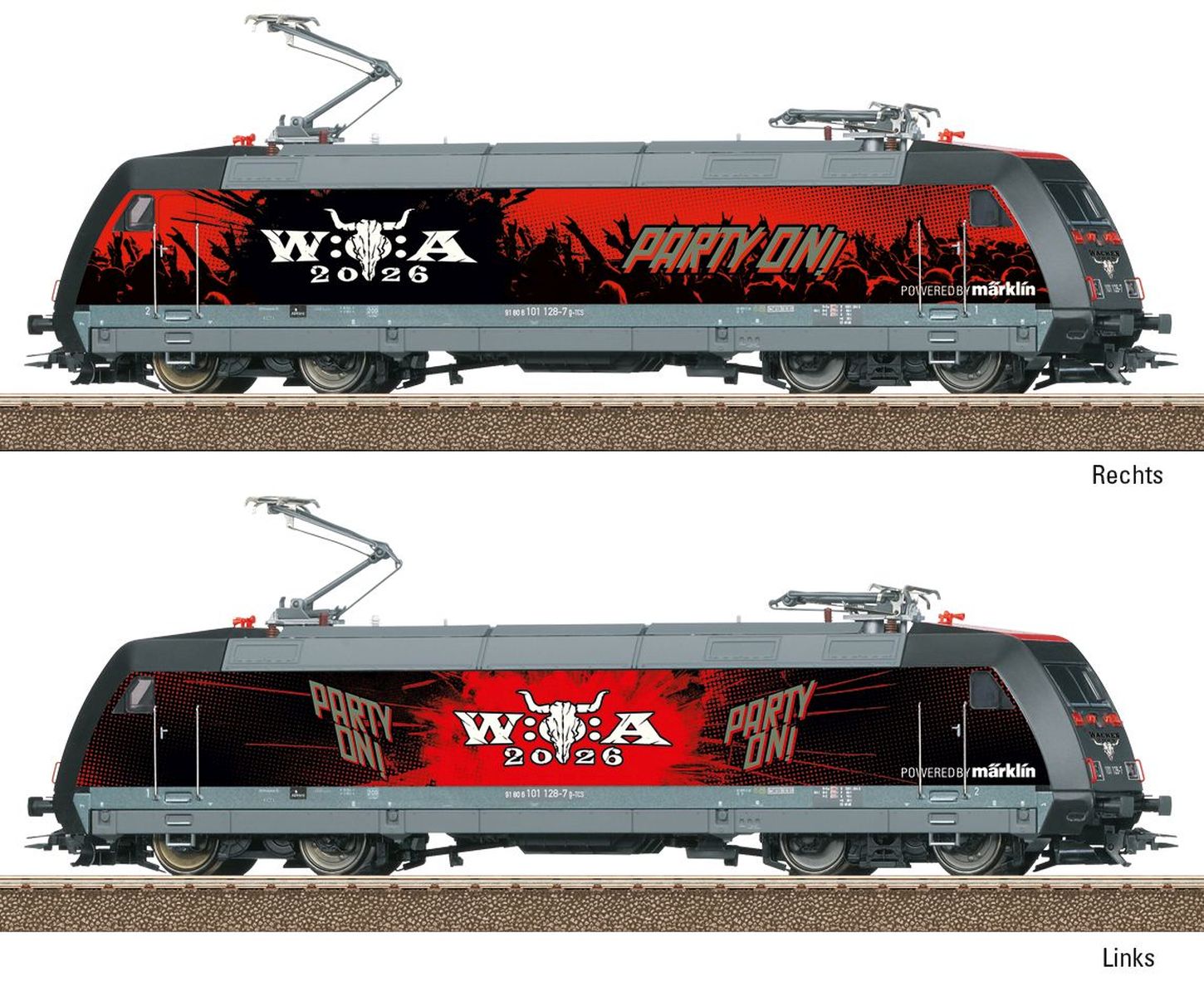 Vorbild: Schnellzuglokomotive Baureihe 101 mit einer Werbegestaltung zum Wacken Open Air (W:O:A®). Betriebszustand 2026.