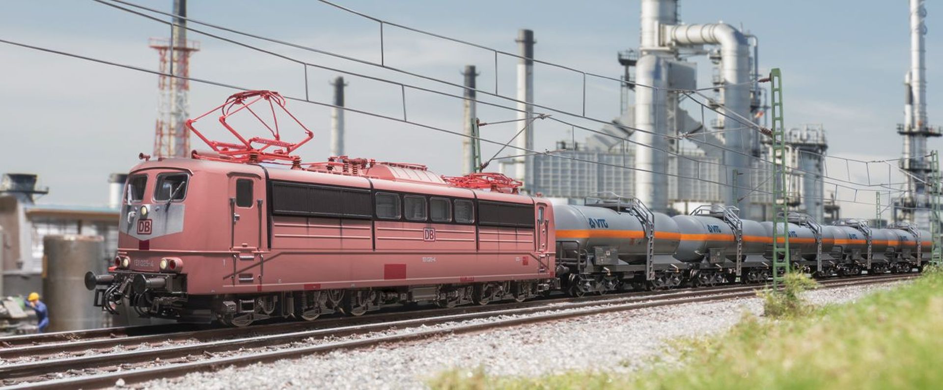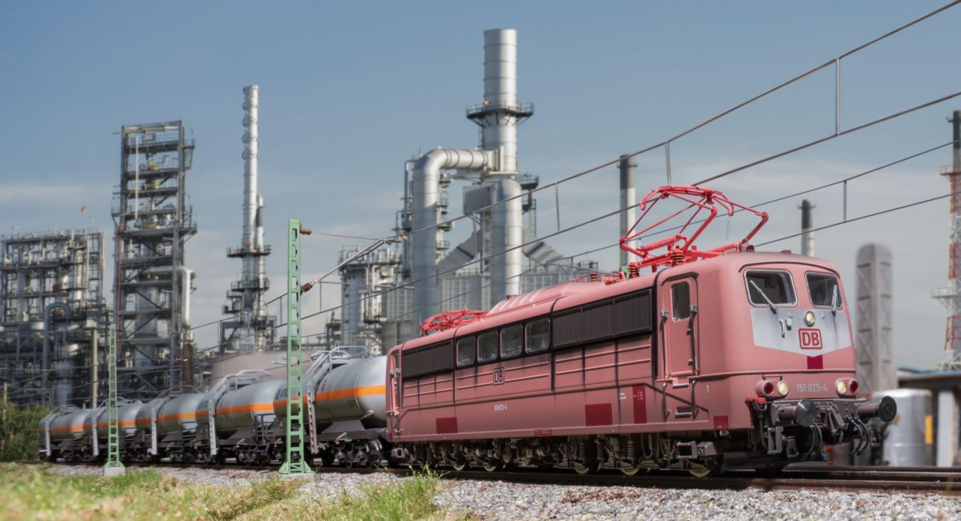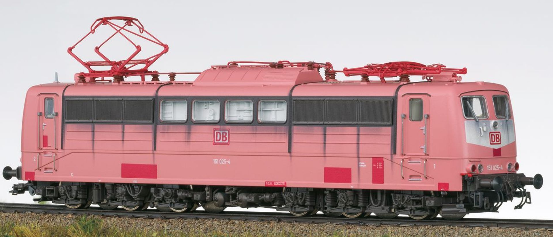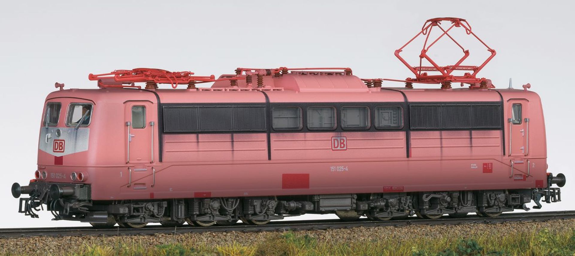 Vorbild: Elektrolokomotive Baureihe 151 der Deutschen Bahn AG. Orientrote Grundfarbgebung. Betriebsnummer 151 025-4. Betriebszustand ab 1998. Länge über Puffer 22,4 cm.