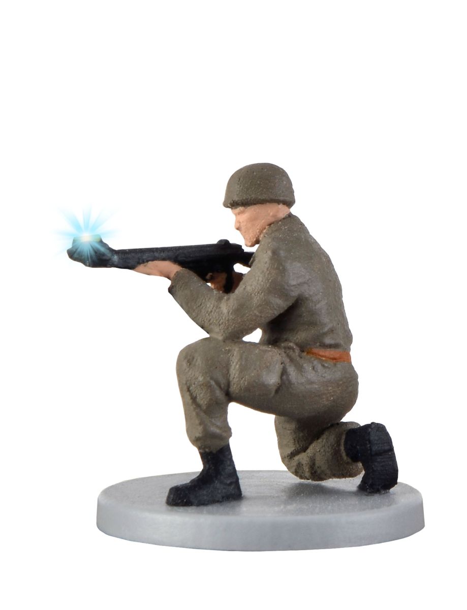 In unregelmäßigen Abständen blitzt durch eine Mikro-LED simuliertes Mündungsfeuer aus dem Lauf. Einbautiefe: 39 mm. Passend dazu unser kibri Bundeswehrsortiment. Höhe: 1,5 cm.