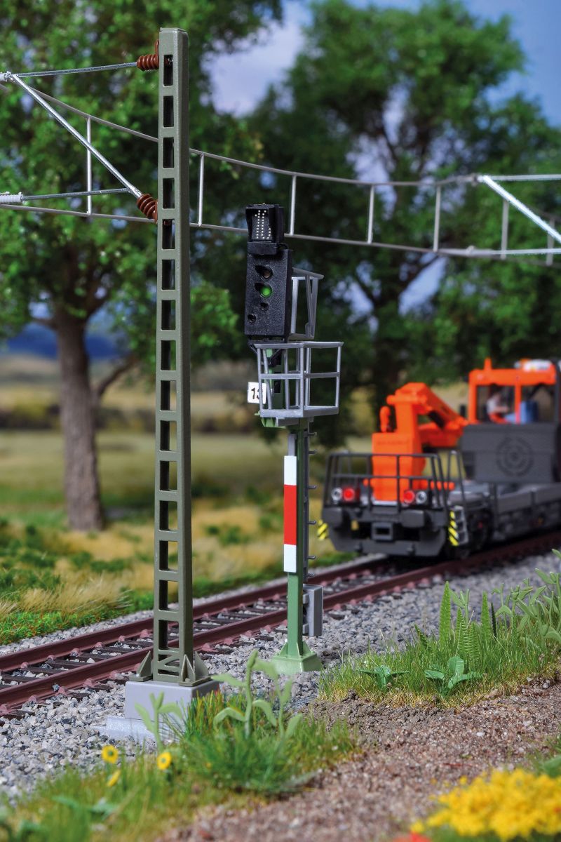 Messingmast, originalgetreue Lackierung, wartungsfreie LEDs, Patentsteckfuß, Steuerung über den Multiplexer 5229 für analoge und digitale Modellbahnanlagen, mit Geschwindigkeitsanzeiger (Zs3), Höhe: 78mm