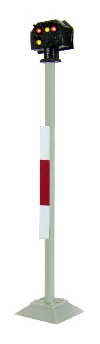 H=44mm, 4 LEDs, Messingmast, originalgetreue Lackierung, Patentsteckfuß, Dieses Signal benötigt den Multiplexer 5229. Er kann durch Tasten, Gleiskontakte oder über ein Digitalsystem gesteuert werden. Durch diese Technologie benötigt man immer nur max. 4 Kabel, egal für welches Signal.