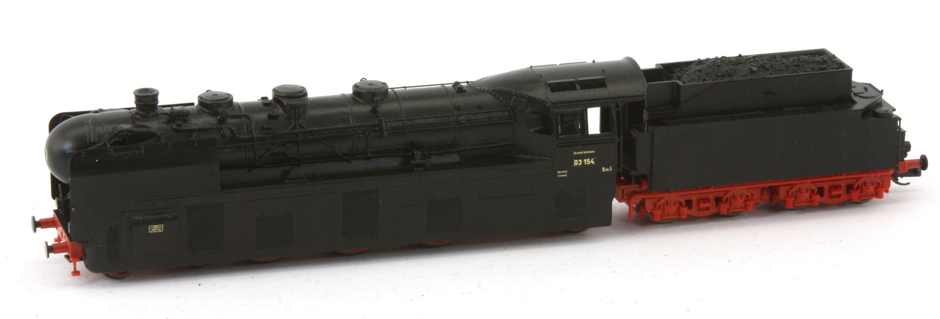 Die Lokomotive BR 03 154 diente als Versuchslok für die Entwicklung der später bei der BR 01 und 03 ausgeführten Vollverkleidungen. Die Versuche dienten der Ermittlung des Leistungszuwachses sowie die Messung der Erhöhung der Lagertemperaturen unterhalb der Stromlinienschale. Zunächst wurde die Maschine ohne Windleitbleche ausgeliefert, jedoch zeigte sich nach kurzer Zeit, dass auf die typischen Wagner- Windleitbleche nicht verzichtet werden kann. Später wurde die Schürze sehr weit zurückgeschnitten, sodaß auf die störanfälligen Jalousien verzichtet werden konnte. Dieses Modell zeigt den Zustand ab Frühling 1934.