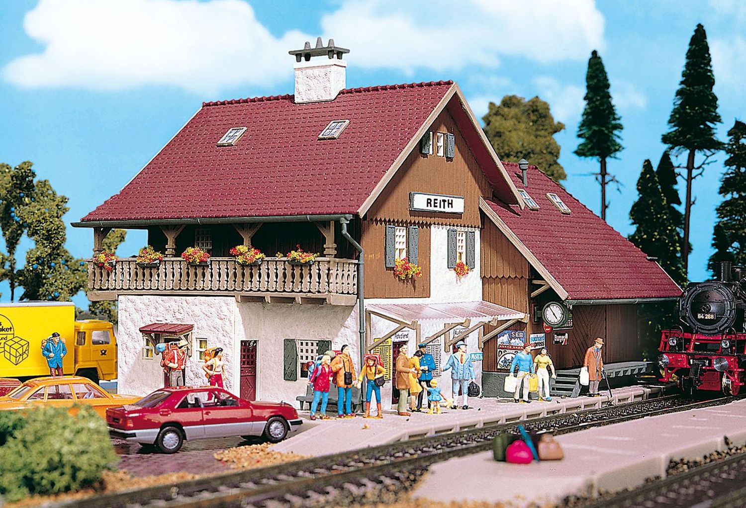 Dieser Bahnhof eignet sich besonders für mittlere und kleine Modellanlagen. Beim Betrachten dieses typischen Gebirgsbahnhofs kommt Ferienstimmung auf.