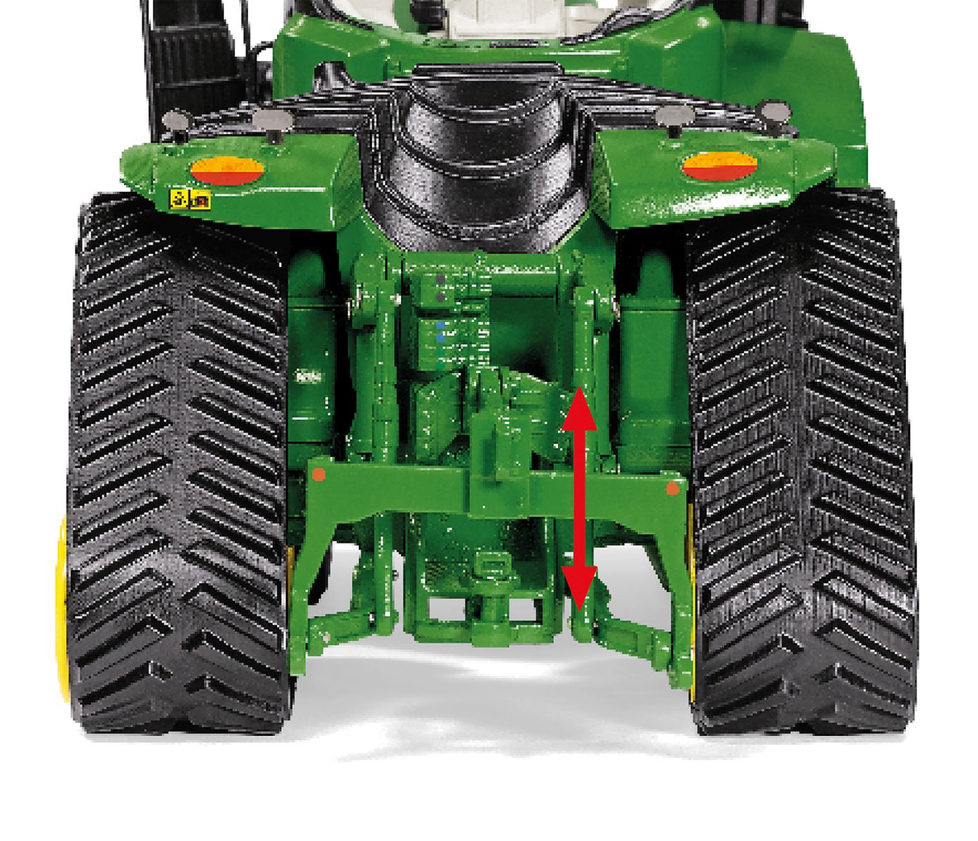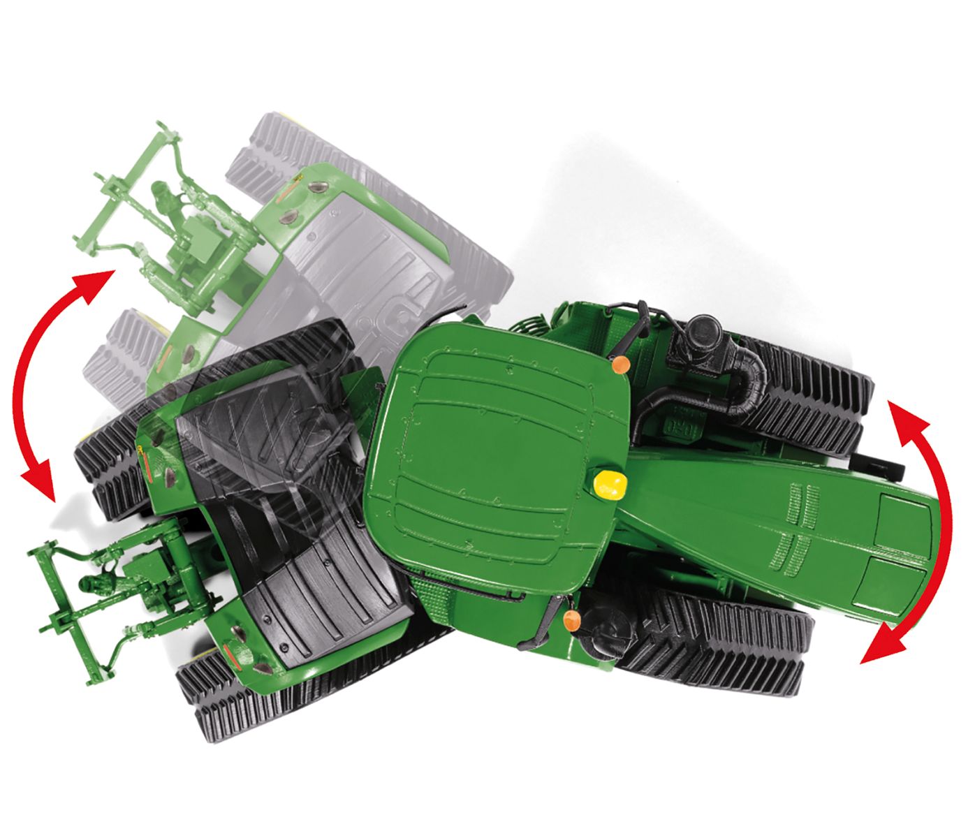 Raupenlaufwerke geben John Deere 9620RX neuen Charakter Immerhin 620 PS bringt der 15 Liter-Motor mit seinen sechs Zylindern und einem Gesamtgewicht von 24,9 Tonnen auf den Acker. Die CommandViewIII-Kabine mit 7 Zoll- oder 10 Zoll-Touchscreen und Vier-Pfosten-Kabinenfederung sorgt für einen bequemen Arbeitsplatz des Agrariers. Und tatsächlich gibt John Deere mit diesem auf den ersten Blick charaktertragenden Schlepper eine Antwort auf die drängenden Fragen der Gegenwart, denn die Großlandwirtschaft ruft nach immer kraftvolleren, effizienteren Problemlösern – der John Deere 9620RX zählt dazu. Schon über 100 dieser Raupenschlepper der Baureihe sind inzwischen in Europa im Einsatz. Im Maßstab 1:32 miniaturisiert WIKING jetzt die mächtige Landmaschine mit ihren vier Laufwerken. Alle funktionsfähig versteht sich. Die Traditionsmodellbauer haben die innovative Schlepper-Reihe detailreich in den Maßstab 1:32 miniaturisiert. Die mächtige Landmaschine überrascht mit zahlreichen Funktionen, die den Nutzwert des Vorbilds deutlich machen. Vorteile der Raupenlaufwerke verändern Alltag der Landwirtschaft Dabei verschaffen die vier Raupenfahrwerke dem mächtigen Schlepper freilich völlig andere Laufeigenschaften. Der 9620RX überzeugt beim Wenden unter Last und mit der Spurtreue selbst bei hügeligen und nassen Bedingungen. Aufgrund seines Antriebs und des Knickgelenks führt er zu geringerer Dammbildung als sein reifengeführtes Pendant. Der 9620RX ist – auch das ist bei der Aufsicht auf das Modell spürbar – ausgesprochen schmal in der Spur unterwegs und somit ideal für Transportfahrten auf der Straße. Bemerkenswert: Der Schlepper verfügt aufgrund der größeren Aufstandsfläche über die geringste Verdichtung. John Deere bedient sich bei Camso, der als einziger Hersteller für Raupenfahrwerksysteme die Produktion der gesamten Serie 9RX beschickt. Das gilt für Raupenbänder, gummierte Antriebsräder und Laufrollen gleichermaßen. Die Raupenbänder enthalten mehr Gummi und mehr eingewebte Stahlfäden, um die Lebensdauer des Raupenbandes und der Führungsstollen bei schweren Anwendungen am Hang, aber auch bei häufigen Straßenfahrten zu erhöhen. Die zwei Laufrollen halten die Raupenbänder auf der ganzen Fahrwerkslänge in Kontakt mit dem Boden. Sie sind in einem engen Abstand angeordnet, um während des Transports und bei bestimmten Feldverhältnissen Vibrationen zu verhindern. Die Konstruktion dämpft auch Stöße, wenn der Fahrer über Hindernisse fährt. Modell mit leicht laufenden Raupenlaufwerken und Knickgelenk Es sind die besonderen Projekte, die für die WIKING-Konstrukteure die größte Herausforderung bedeuten. Dazu zählt ohne Zweifel das neue 1:32-Modell des John Deere 9620RX. Während die Miniaturisierung eines Schleppers inzwischen eine jahrelange Detailroutine mit Präzisionsgarantie bedeutet, bedürfen die vier Laufwerke, die an die Stelle der Räder gerückt sind, diesmal ein deutliches Mehr an Konstruktionsaufwand. Der 620 PS starke Raupenschlepper wurde für die größten Herausforderungen in der modernen Landwirtschaft geschaffen. Es geht verständlicherweise um Produktivitätssteigerung, Kostenreduzierung und Risikominderung. All das soll das Vorbild, das im amerikanischen Schlepperwerk in Waterloo gebaut wird, in sich vereinigen. Die Landmaschinenexperten von WIKING geben den Freunden des Präzisionsmaßstabs 1:32 jetzt ein attraktives Funktionsmodell an die Hand. Dabei gelingt dem WIKING-Modell mit der Kombination aus Metall- und Kunststoffbauteilen die detaillierte Miniaturisierung der Raupenlaufwerke, die selbstverständlich voll funktionsfähig sind. Hinzu kommt die Knicklenkerfunktion, die über ein pendelndes Knickgelenk beweglich gehalten wird. Die Anhängerkupplung am Heck erweist sich als ebenso detailreich, wie die schwere, aus Zinkdruckguss gefertigte Motorhaube. Gleiches gilt für die beiden Fahrgestellteile. In bewährter Weise kann der Betrachter seinen Blick durch den filigran modellierten Kabineninnenraum schweifen lassen, die linke Tür ist als Zugang zum Öffnen angelegt. Die Beleuchtung vorne und hinten sowie an der Kabine wird durch fein eingesetzte Kunststoffelemente erreicht. Hinzu kommen Rundumleuchten, Außenspiegel, Luftansaugung, aber auch Auspuff und der Werkzeugkasten vorne links. Die Rückspiegel lassen sich selbstverständlich ebenso verstellen wie die Heckkupplung.