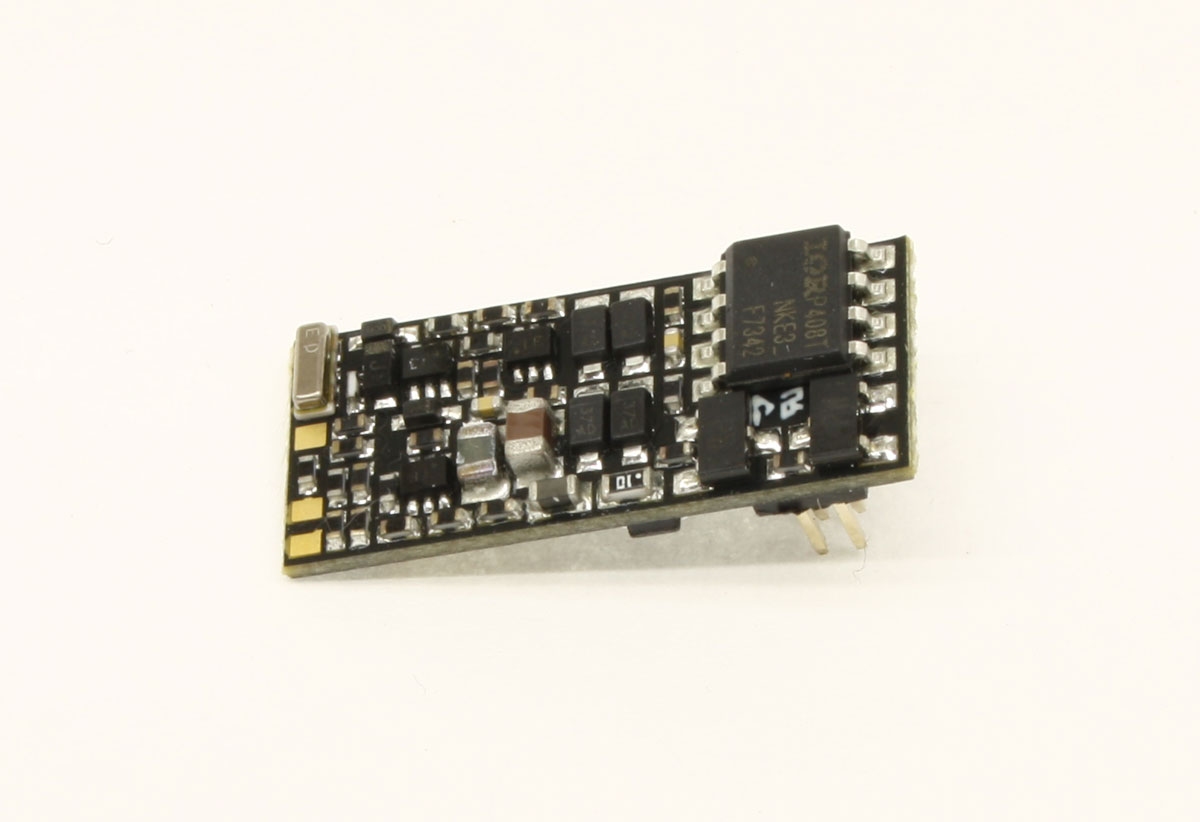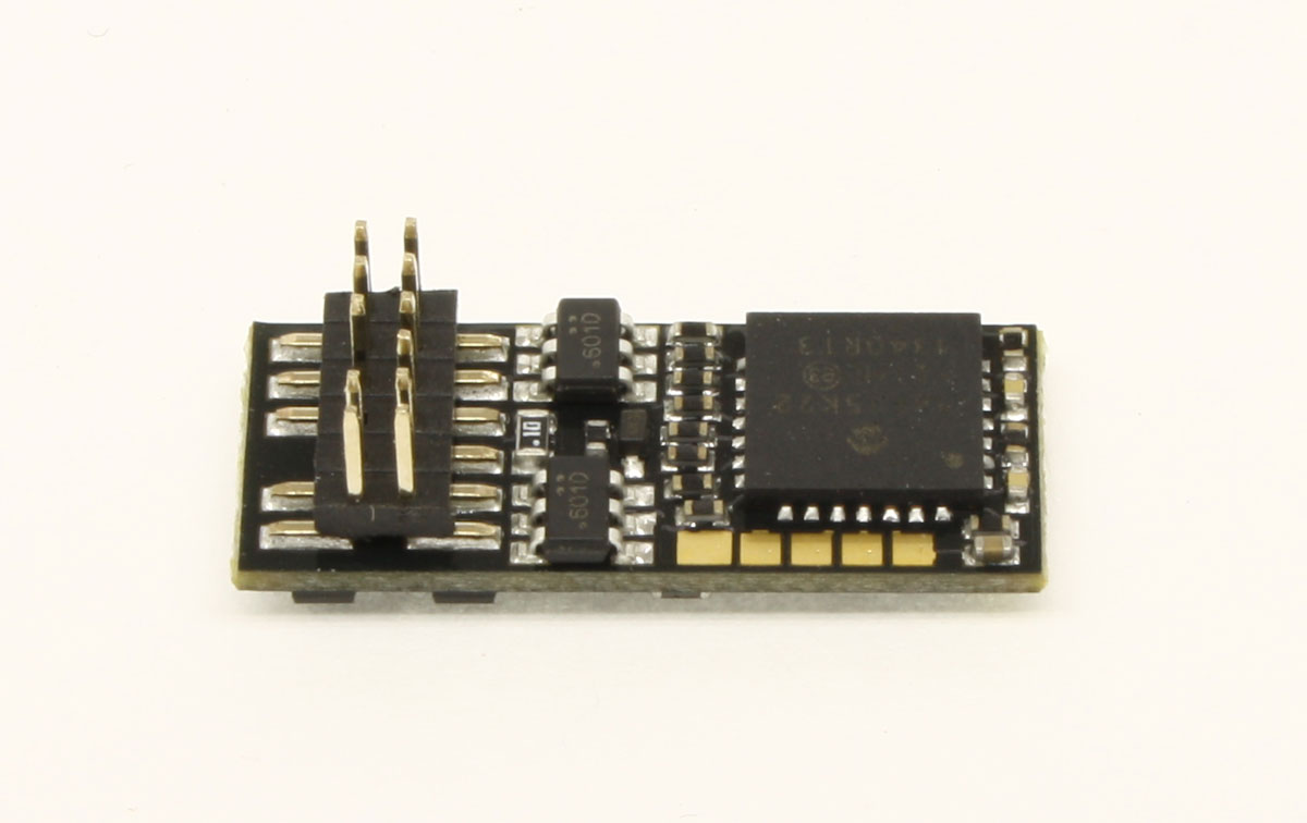 Zimo Ankündigung vom Janaar 2012: Ein Decoder mit 12-poliger PluX-Schnittstelle, 20 x 8,5 x 3 mm, also schmal genug, dass er in alle Fahrzeuge hineinpasst, egal wie die Schnittstellen-Definition 'interpretiert' wird (indem der Decoder nicht breiter als der Stecker selbst ist). Motor- bzw. Gesamtstrom 1 A, 4 Funktions-Ausgänge, vollständiger ZIMO Feature-Satz. Dieser Typ wird gleichzeitig das ZIMO Decoder-Programm in preislicher Hinsicht nach unten abrunden, d.h. günstiger als der beliebte MX630 angeboten werden können. 4 Ausführungen: neben dem 12-poligen PluX auch bedrahtete Varianten NEM652, NEM651, und freie Enden.