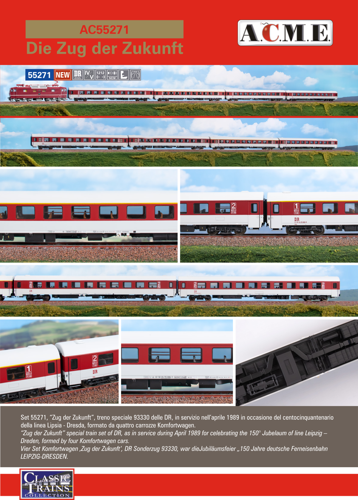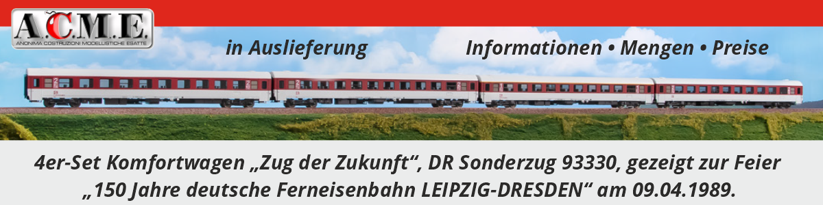 Der bereits im März 2021 angekündigte "Zug der Zukunft" befindet sich nun in Auslieferung. Wir erwarten die erste Teillieferung in KW 32/2023. Stand heute (05.08.2023) haben wir noch ca. 30 Stück für den freien Verkauf; der Artikel kann somit noch vorbestellt werden. Der tatsächliche UVP (unverbindliche Preisempfehlung des Herstellers) ist nun mit 350,00 € bekannt. Wie immer bei uns: alle Vorbestellpreise behalten ihre Gültigkeit! Vorbestellen lohnt sich! Der erste Vorbestellpreis lag bei 239,99 €, später bei 269,99 bzw. 299,99 €. ACME berechnet uns den vollen aktuellen Preis, wir halten unser Wort!