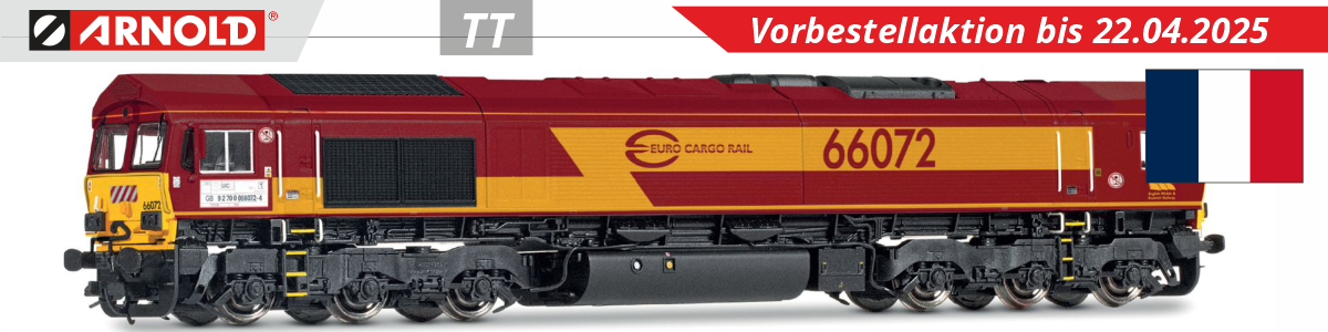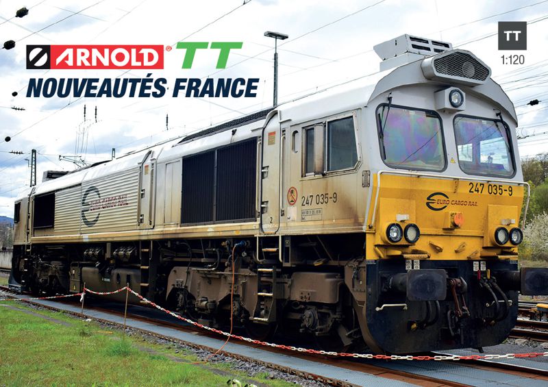 Der Maßstab 1:120 (TT) feierte seine Premiere auf dem französischen „Salon international du Train Miniature de Bourges“. Dort präsentierte Hornby/Arnold eine Auswahl an Lok- und Wagenmodellen nach französischen Vorbildern, welche ab sofort auch bei uns vorbestellt werden können. Interessenten steht ein Prospekt zur Verfügung, der neben der Modellübersicht auch einen Überblick über passende Gleise und Zubehör bietet.