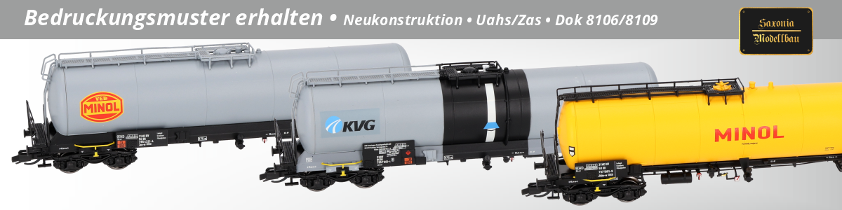 Bedruckungsmuster erhalten • Saxonia Kesselwagen Uahs/Zas • 8109 und 8106 • TT
