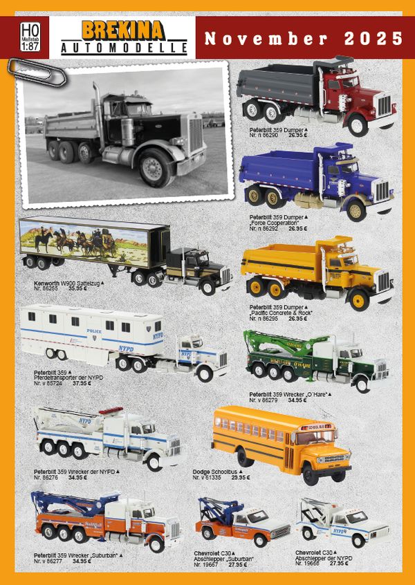 Amerikanische PKW: Ein echtes Highlight ist das BluesMobil aus dem Kultfilm The Blues Brothers – diesmal mit dem großen Dachlautsprecher, wie er im Film in wenigen, aber unvergesslichen Szenen zu sehen war. Neben dieser Version erscheinen auch eine zivile Ausführung sowie ein Fahrzeug der California Highway Patrol. Weitere US-PKW in neuen Farbvarianten erweitern das Sortiment.