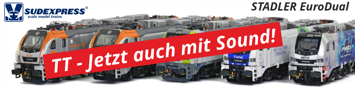 Ab sofort gibt es Artikelnummern für die Soundvarianten der S 159 Eurodual (TT) von Sudexpress. Lt. Sudexpress sind ESU-Decoder vorgesehen.