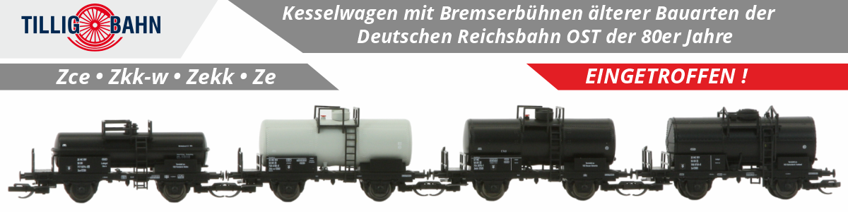 Unsere Exklusivmodelle zum Thema "Kesselwagen der Deutschen Reichsbahn Ost älterer Bauarten, eingesetzt in den 80er Jahren" wurden ausgeliefert. Restbestände sind noch verfügbar.