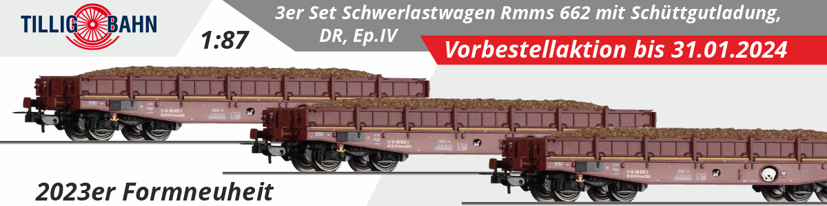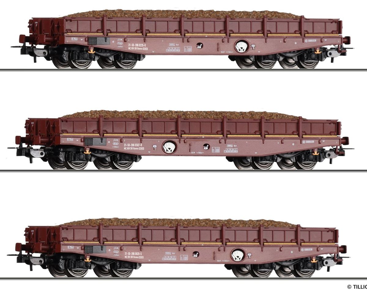 - Tillig 502255 - 3er Set Schwerlastwagen Rmms 662 mit Schüttgutladung, DR, Ep.IV