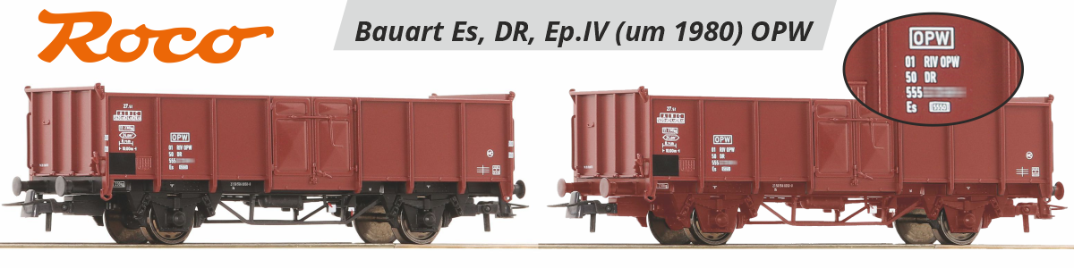 Roco hat den offenen Güterwagen der Bauart Es im Sortiment. Dieser Wagen war im Original der „Brot- und Butterwagen“ der Deutschen Reichbahn Ost. Roco hat davon bereits einige umgesetzt, allerdings nicht mit OPW-Beschriftung ohne Bremserbühne in Epoche IV. Genau diese Variante war beim Vorbild besonders oft vertreten.