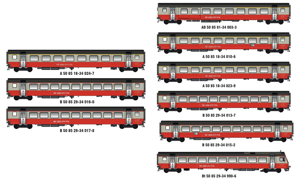 Um 1990 kamen auf diesen Verbindungen häufig Einheitswagen III (EW III) der SBB zum Einsatz. Diese Wagen wurden Ende der 1970er- und Anfang der 1980er-Jahre für den modernen InterCity-Verkehr beschafft. L.S. Models erweitert dieses Thema nun um ein 3er-Set (MW2109-1) als Ergänzung zum bereits bekannten 6er-Set MW2109.