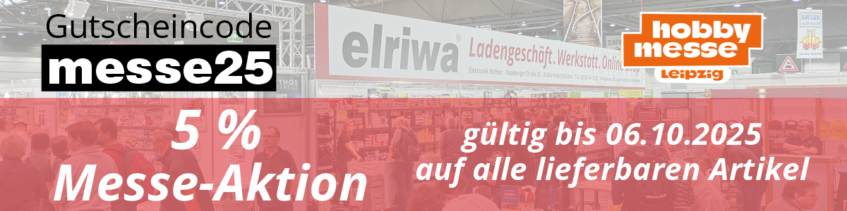 Zur Hobbymesse in Leipzig erhalten Sie 5 % Messerabatt direkt am Stand (auf alle Artikel, welche sich am Stand befinden) und ab sofort online auf alle lieferbaren Artikel mit dem Code messe25.