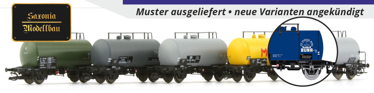 Saxonia erhielt die ersten Muster unserer exklusiven Varianten des Kesselwagen "Deutz". Zwar sind einige Kleinteile und Bedruckungen noch nicht 100%ig perfekt, aber man sieht nun bereits die Ausführungsqualität dieser Modelle. Alle TT-Bahner können sich auf diese Formneuheiten freuen. Unsere Exklusivvarianten werden im IV. Quartal 2023 ausgeliefert.