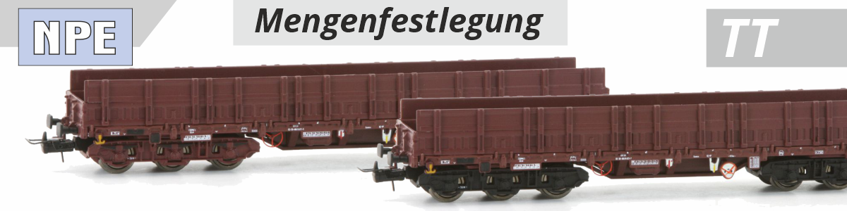 - bei den hochgebordeten Wagen sind die Stirnbordwände - so wie bei der Variante mit den abgeklappten Bordwänden - tauschbar, im Auslieferzustand sind die Stirnbordwände hochgebordet