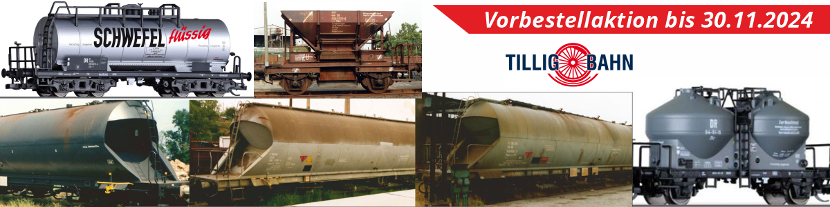 Wir präsentierten vier weitere TT-Exklusivmodelle von Tillig, welche wir bereits zur Hobbymesse in Leipzig angekündigt haben. Die Vorbestellaktionen für diese Artikel haben wir bis 30.11.2024 verlängert. Anfang Dezember 2024 werden wir die Produktionsmengen bei Tillig melden und die Auslieferungen erfolgen 2025.
