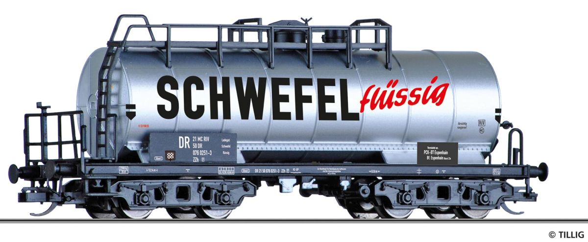 TT-Exklusivmodell • Tillig 502351 - Kesselwagen ZZh, DR, Ep.IV 'Schwefel flüssig'