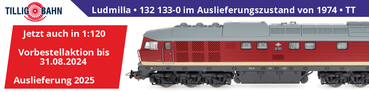 Dieses Vorbild haben wir sehr erfolgreich mit Piko für die Nenngröße H0 umgesetzt. Da wir zu dieser Lok alle Infomationen vorliegen haben, Tillig die Ludmilla (BR 132) als Formneuheit bringt und uns viele TT-Bahner auf dieses Modell angesprochen haben, ist es naheliegend, dieses Modell als TT-Exklusivmodell bei Tillig produzieren zu lassen. Die Auslieferung erfolgt 2025.